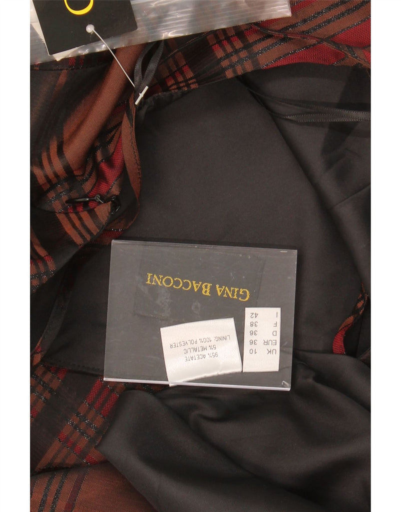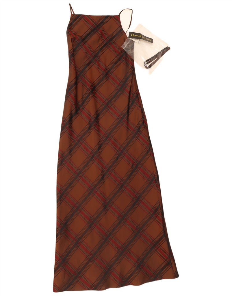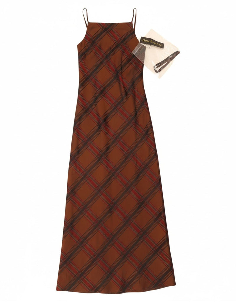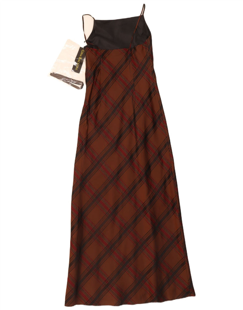 GINA BACCONI Womens Sleeveless Maxi Dress UK 10 Small Brown Check Metallic