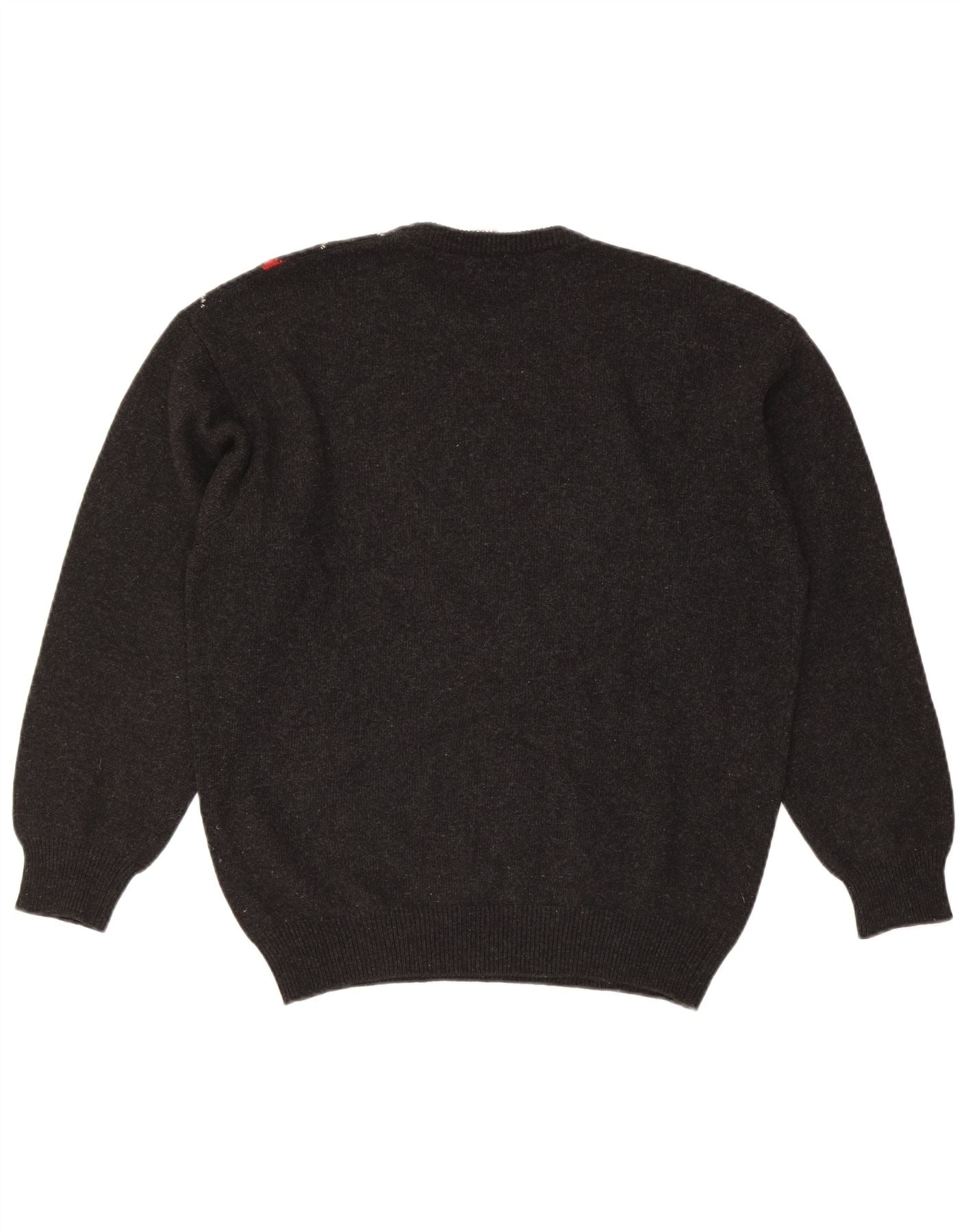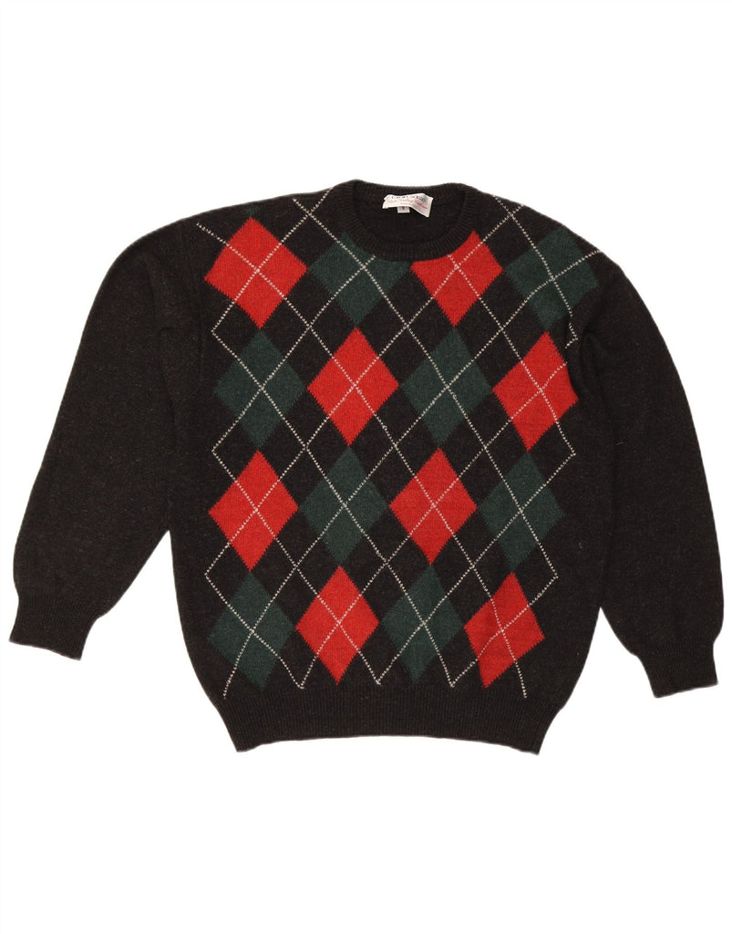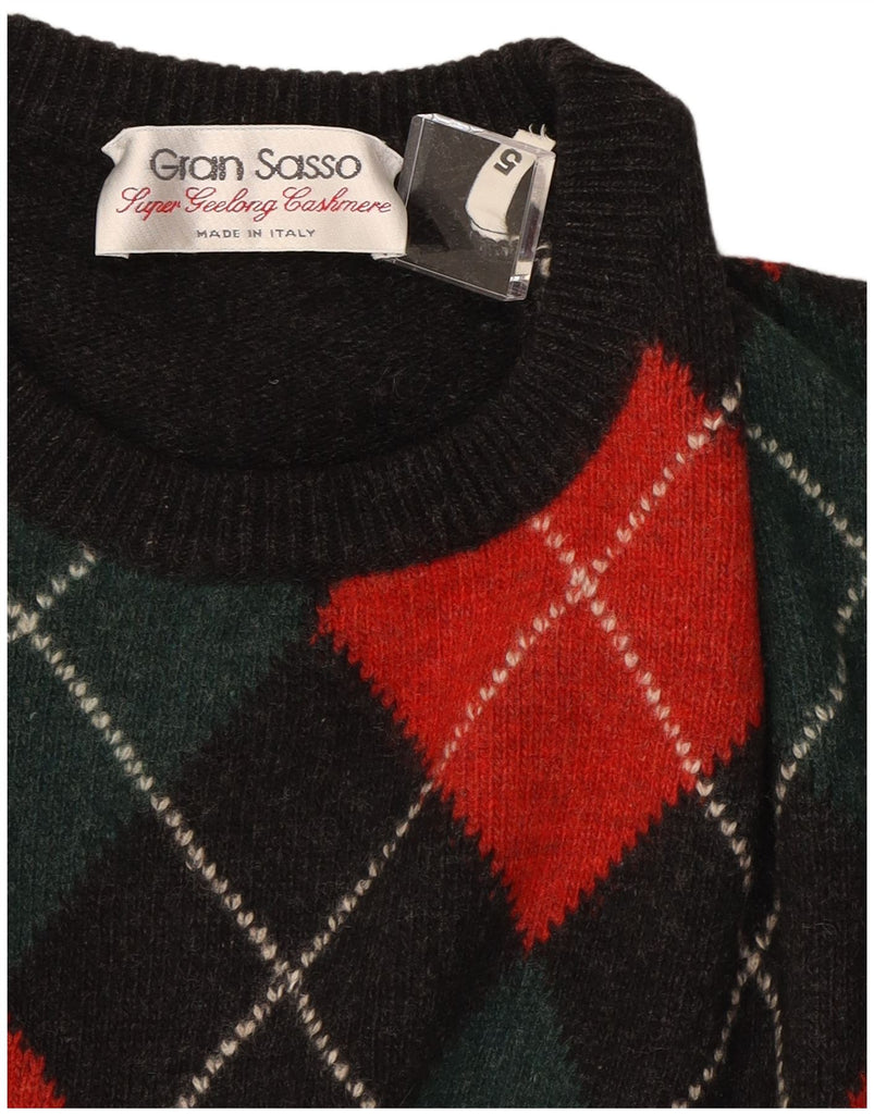 GRAN SASSO Mens Crew Neck Jumper Sweater Large Grey Argyle/Diamond Wool