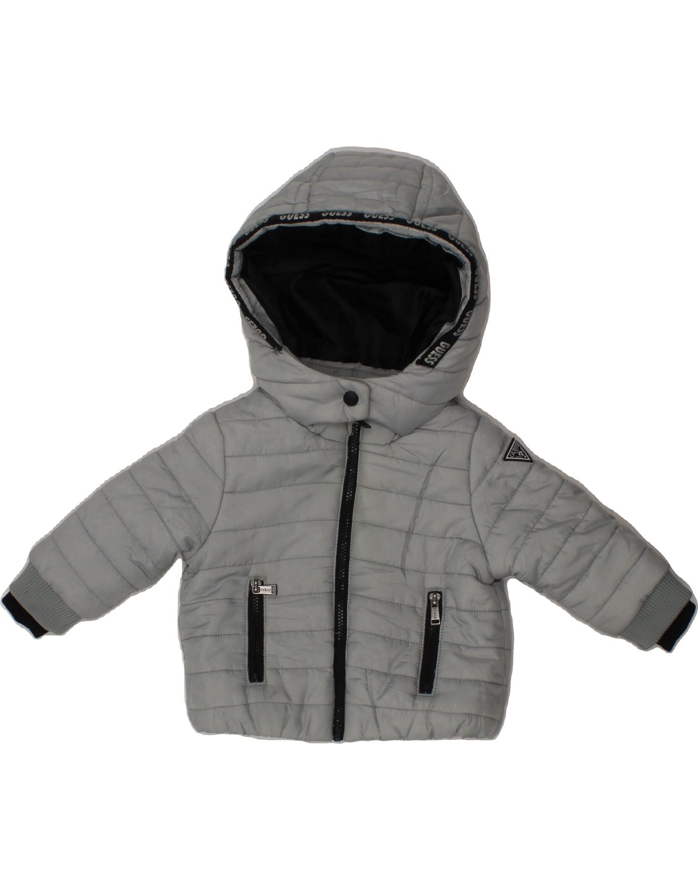 GUESS Baby Boys Hooded Padded Jacket 3-6 Months Grey Polyester