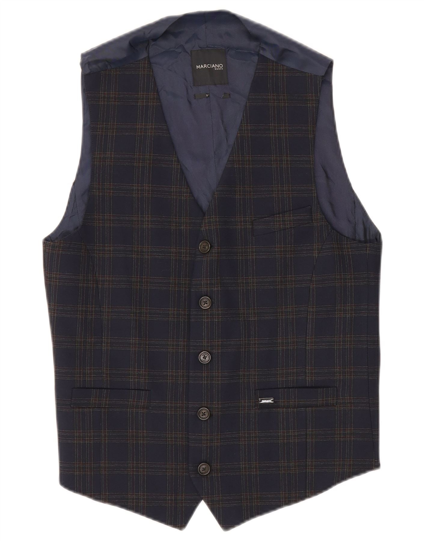 GUESS BY MARCIANO Mens Waistcoat IT 48 Small Navy Blue Check Polyester