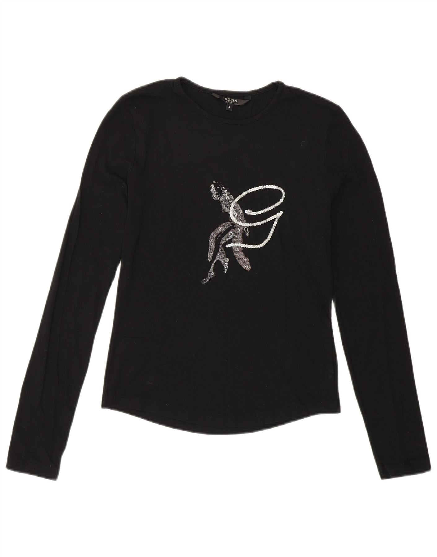 Guess By Marciano Womens Graphic Top Long Sleeve Size 3 XS Black