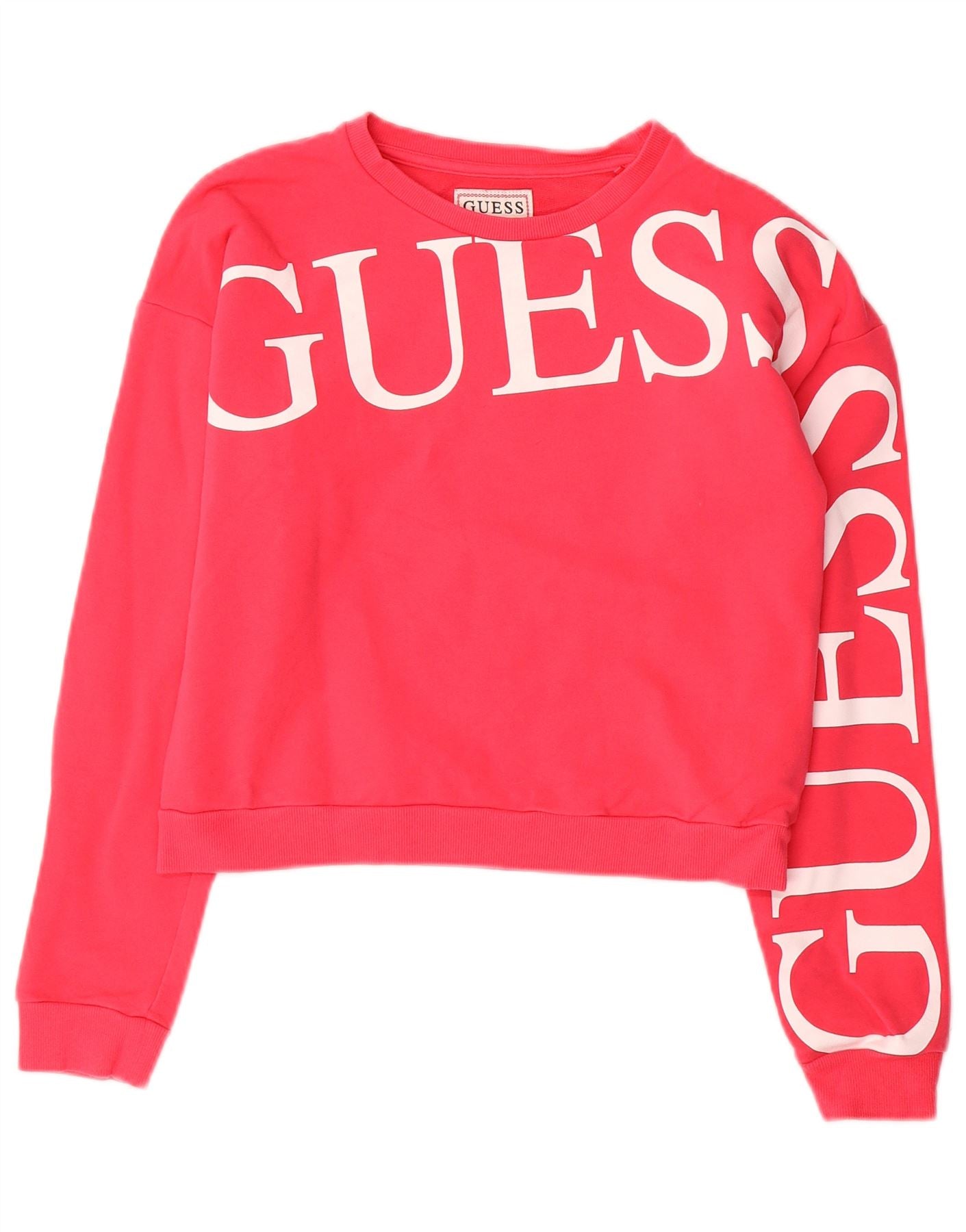 GUESS Girls Crop Graphic Sweatshirt Jumper 13-14 Years Pink Cotton