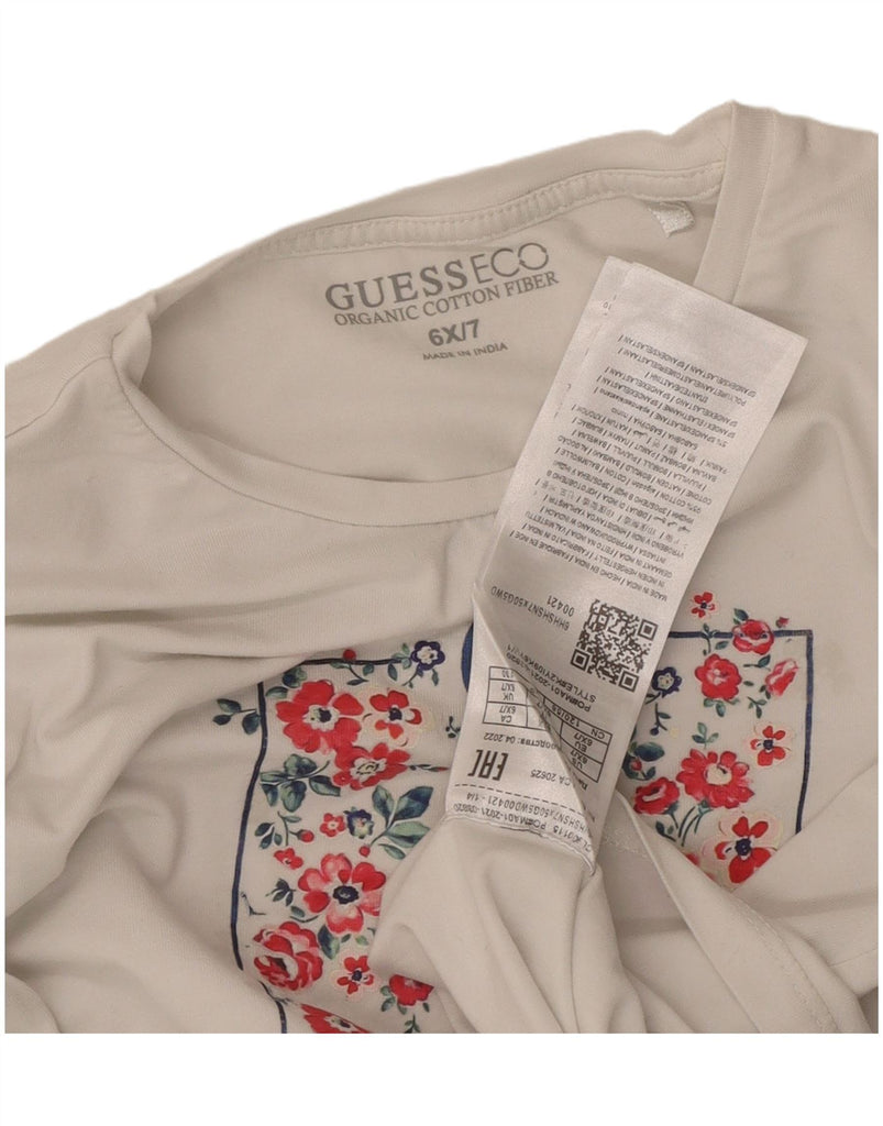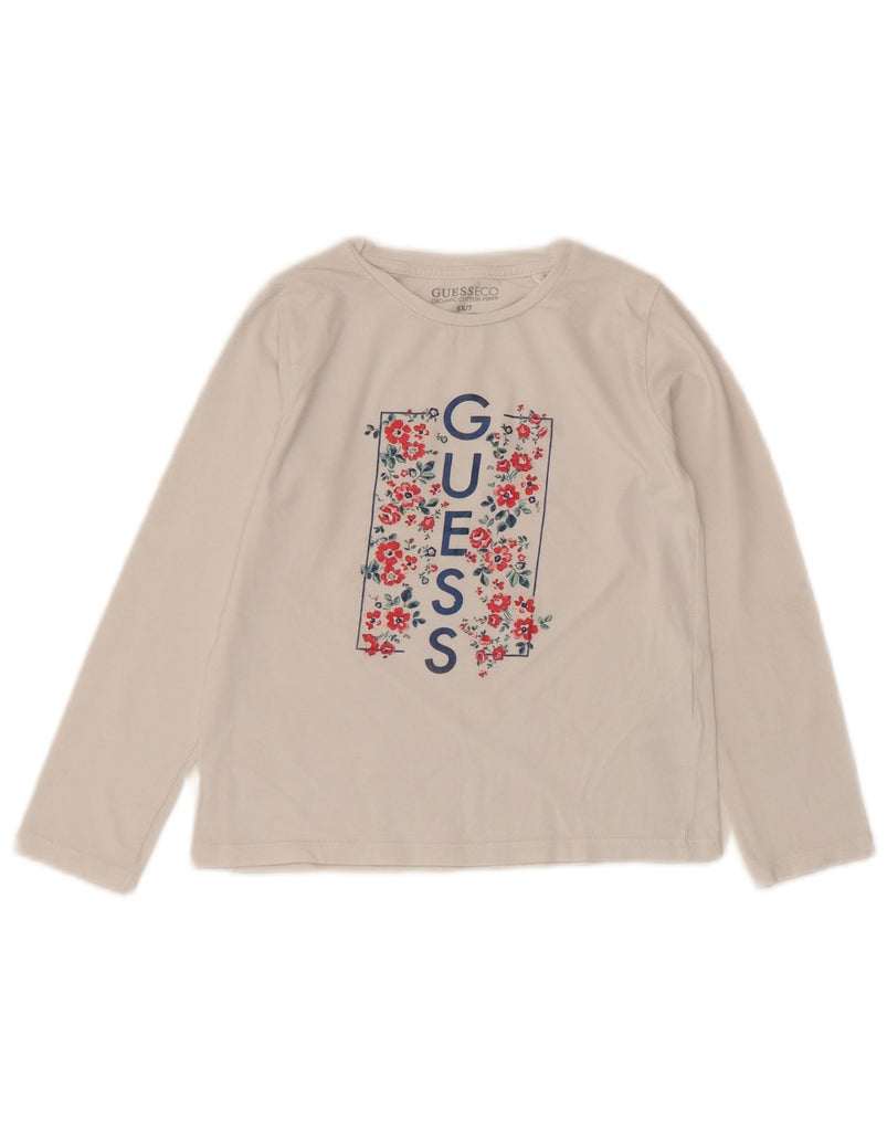 GUESS Girls Graphic Top Long Sleeve 6-7 Years White Floral Cotton