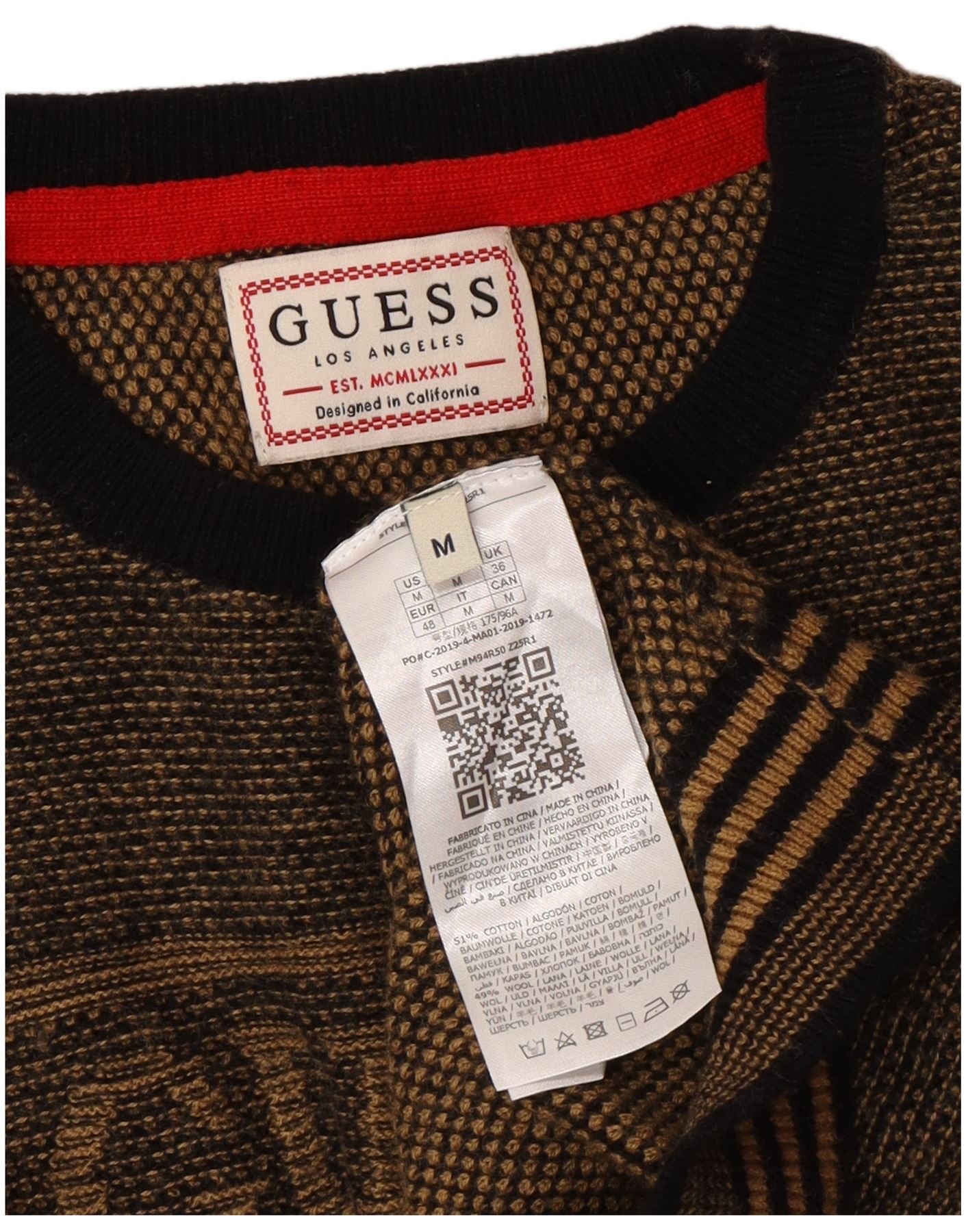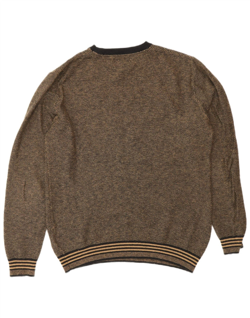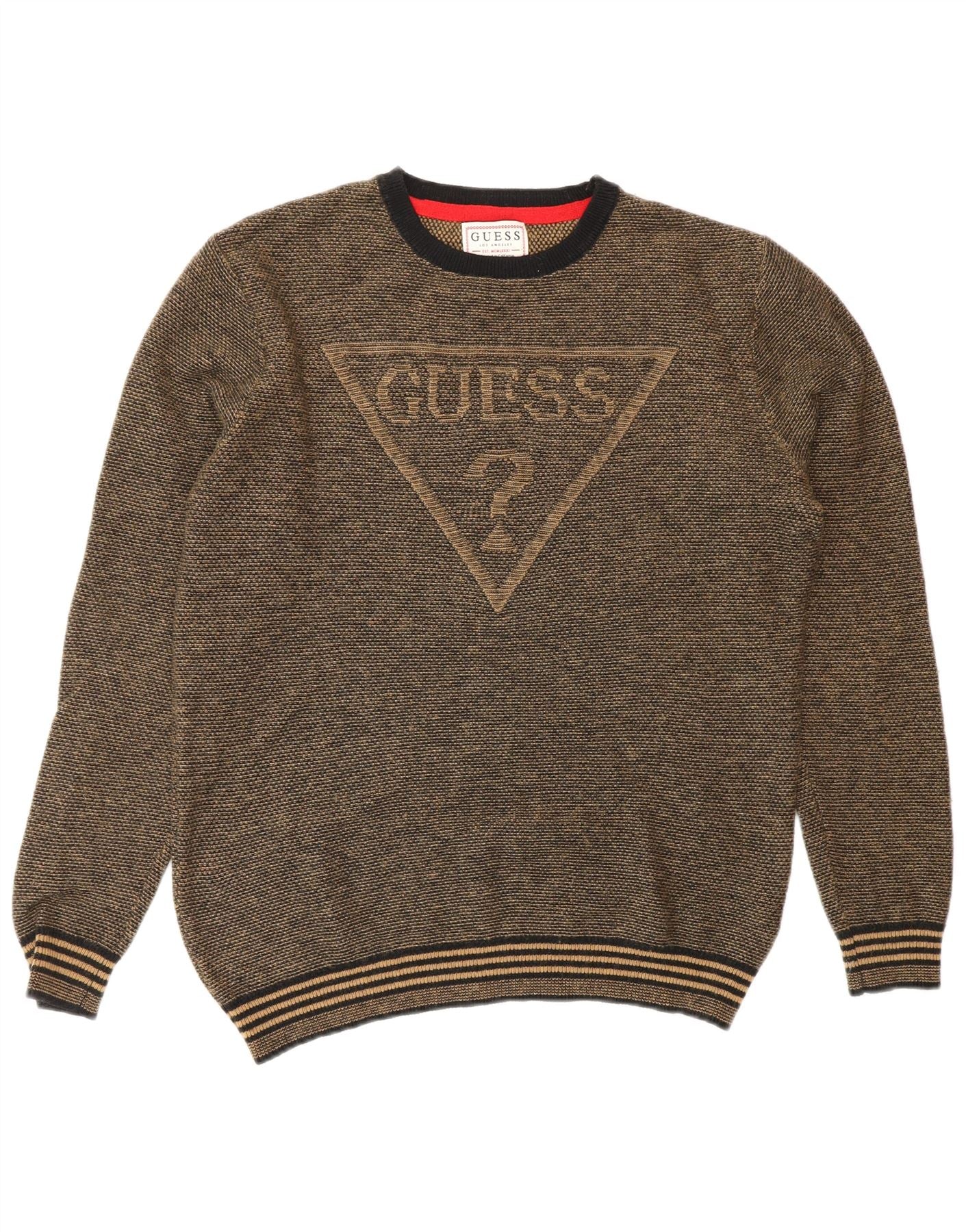 GUESS Mens Graphic Crew Neck Jumper Sweater Medium Brown Flecked Cotton
