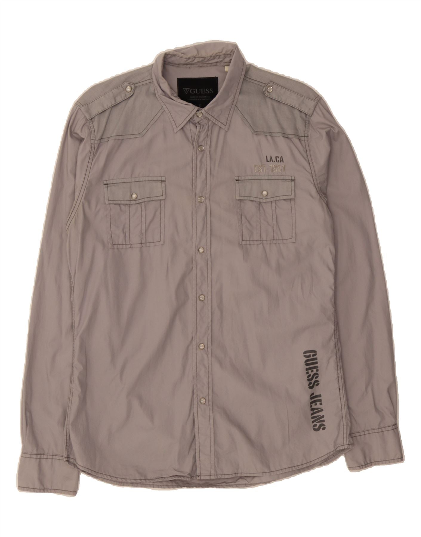 GUESS Mens Graphic Shirt Large Grey