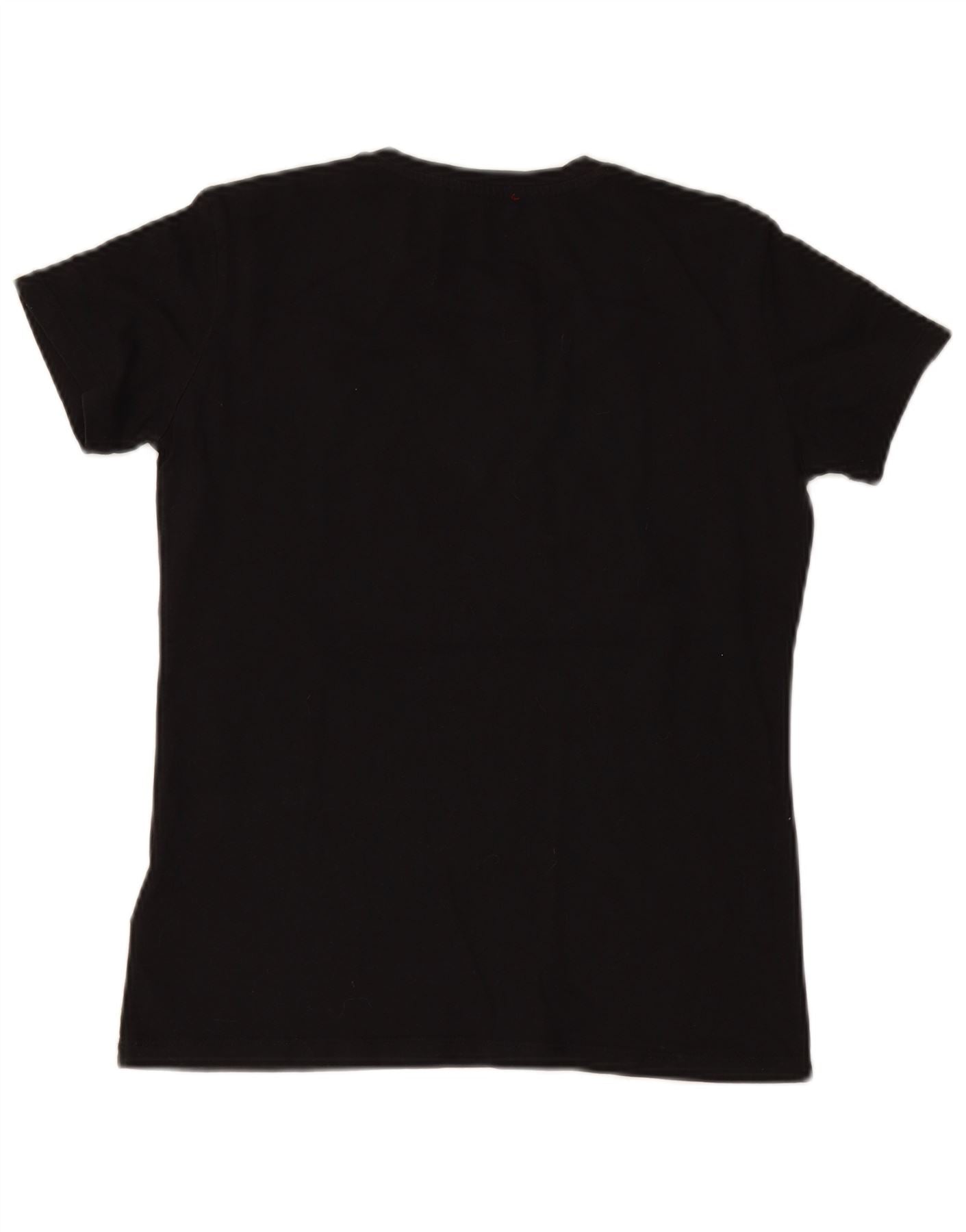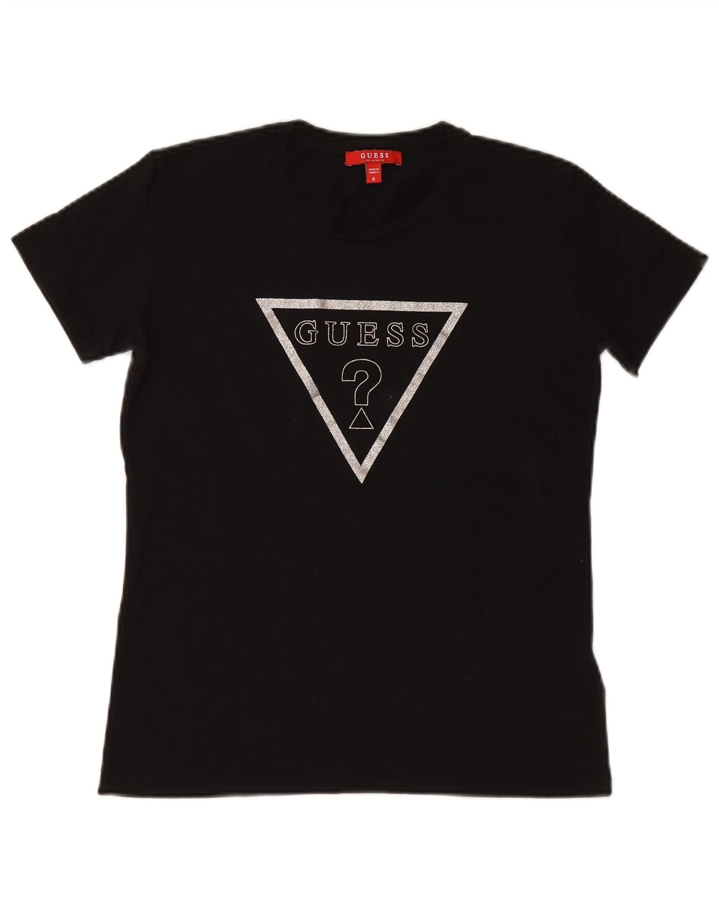 GUESS Womens Graphic T-Shirt Top UK 12 Medium Black Cotton