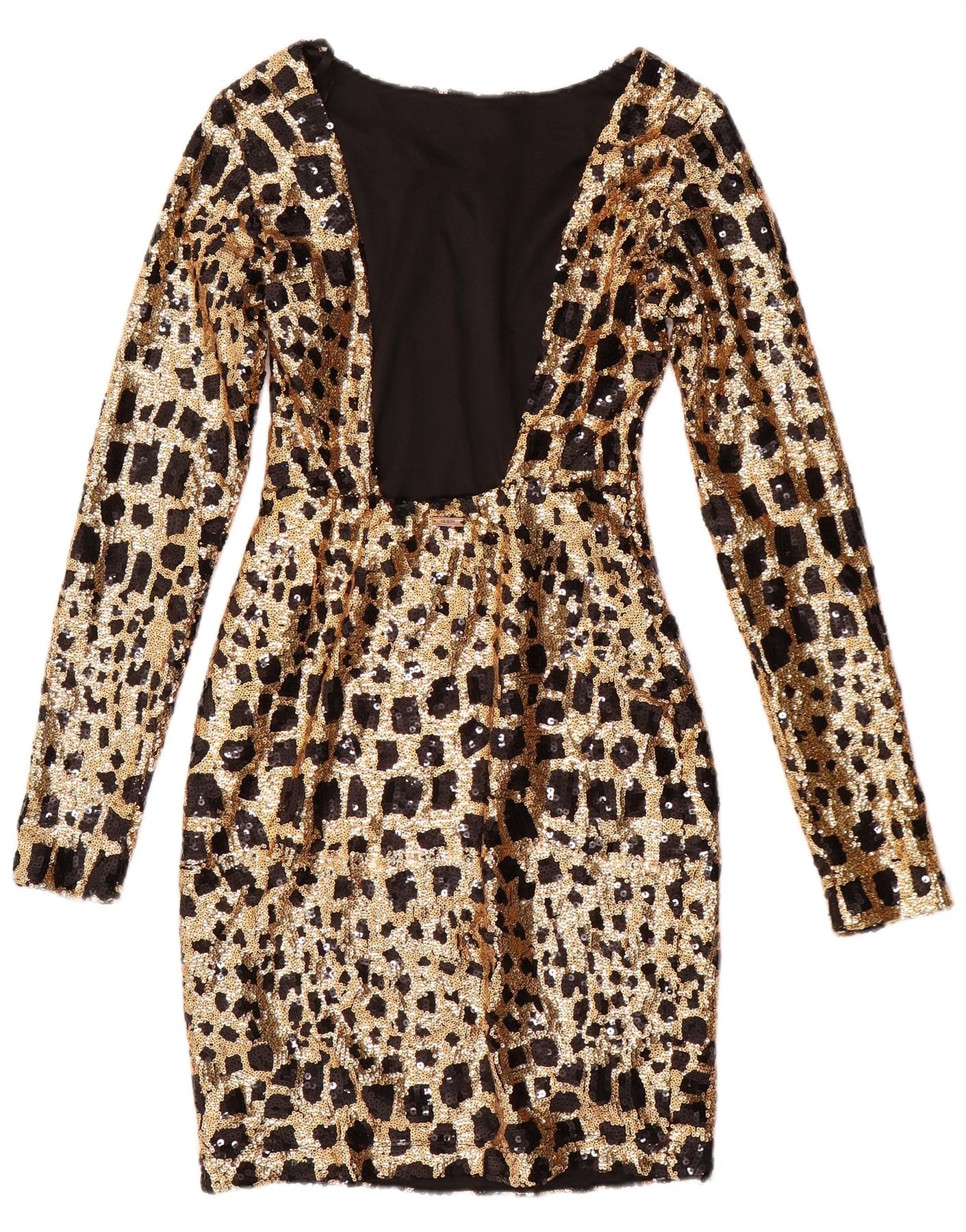 GUESS Womens Long Sleeve Sequin Bodycon Dress UK 6 XS Gold Geometric