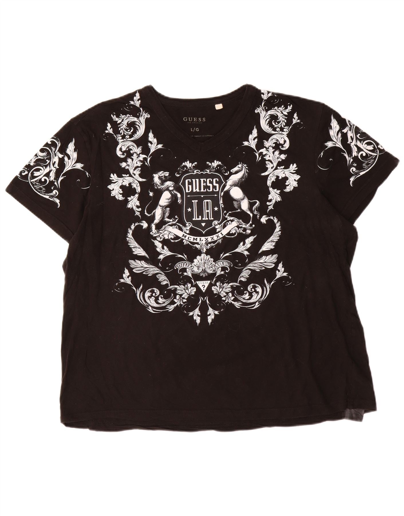 GUESS Womens Oversized Graphic T-Shirt Top UK 16 Large Black Paisley