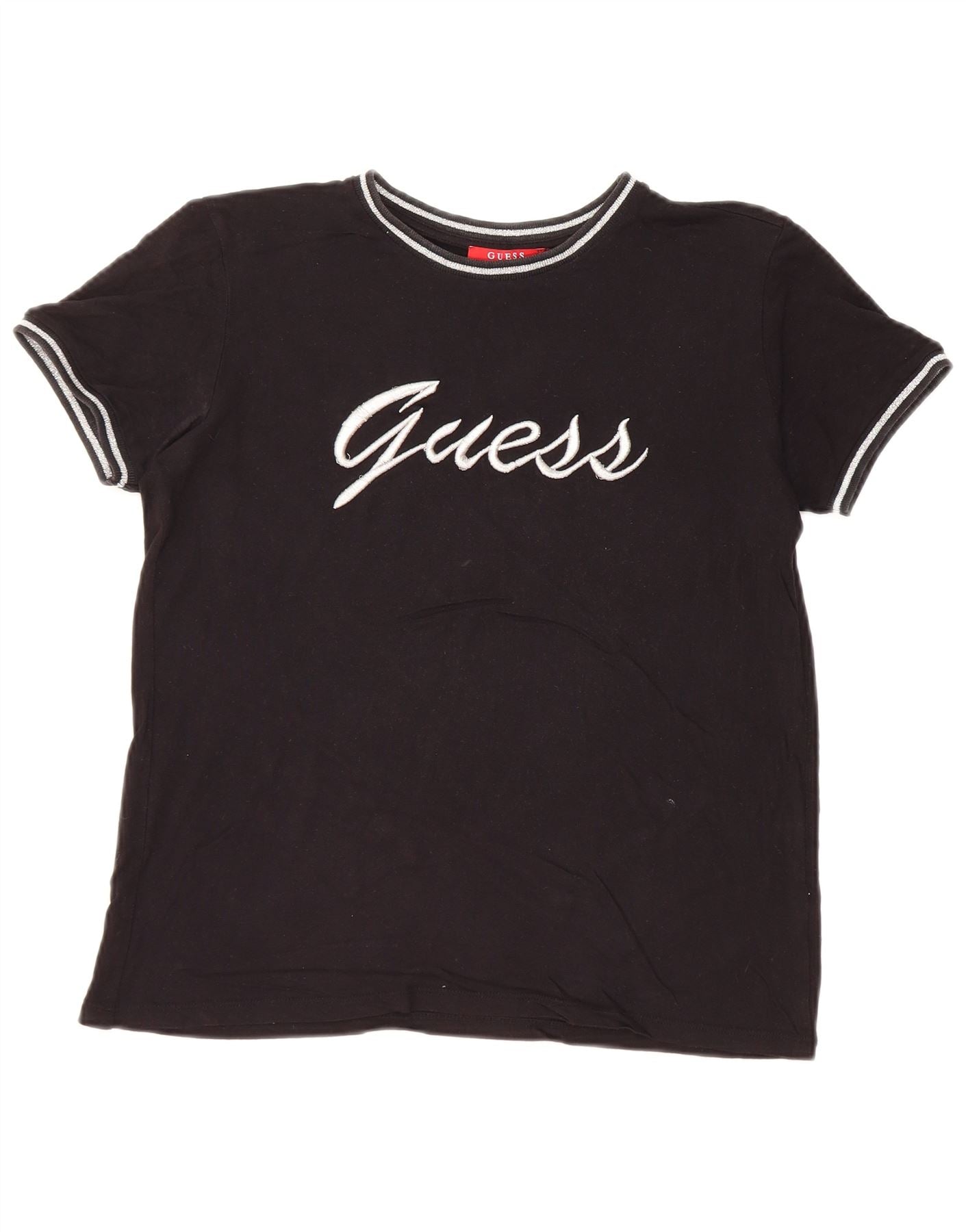 GUESS Womens Oversized 3/4 Sleeve Graphic Hoodie Jumper UK 8 Small Black