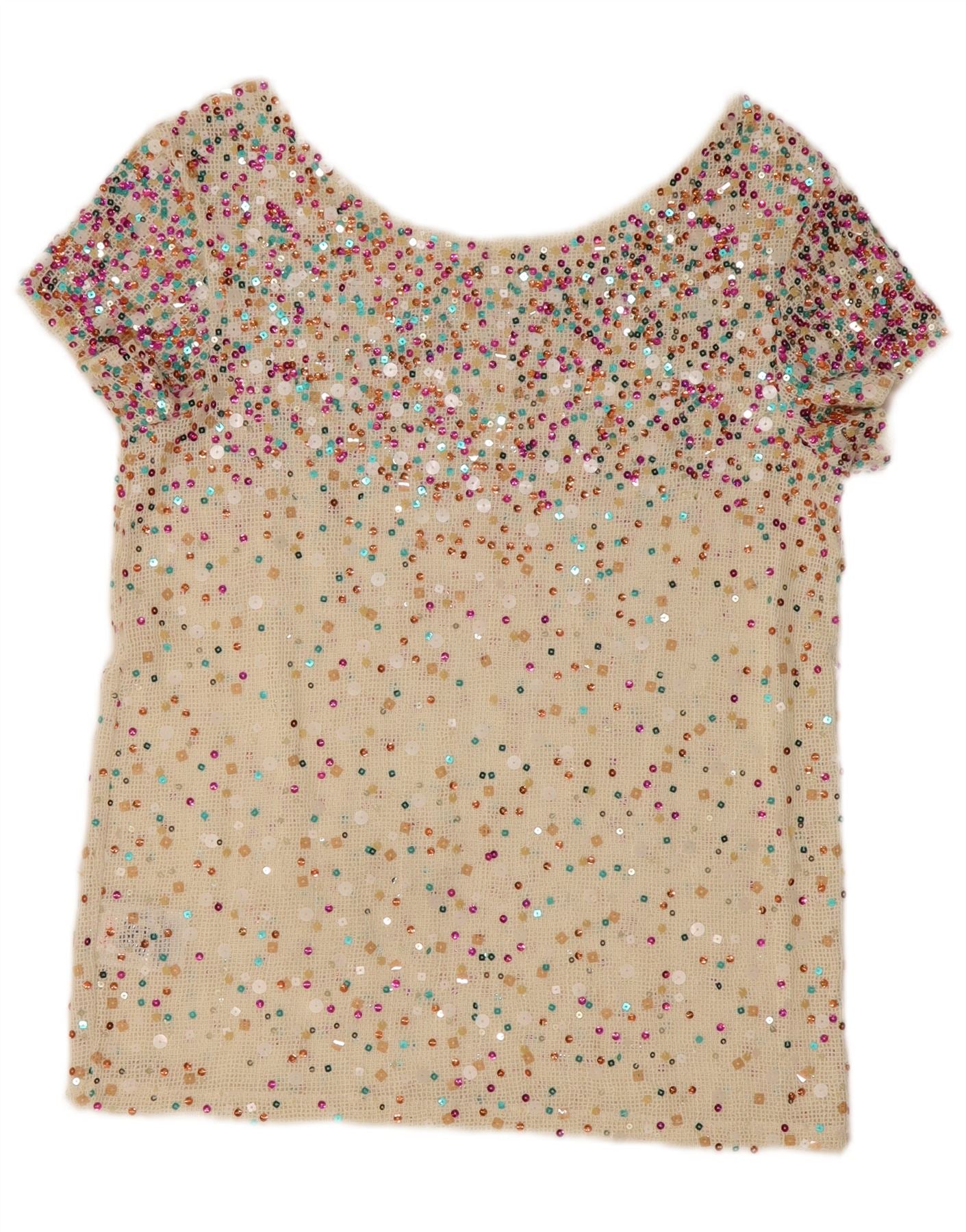 GUESS Womens Sequin Crochet Blouse Top UK 10 Small Off White Polyester