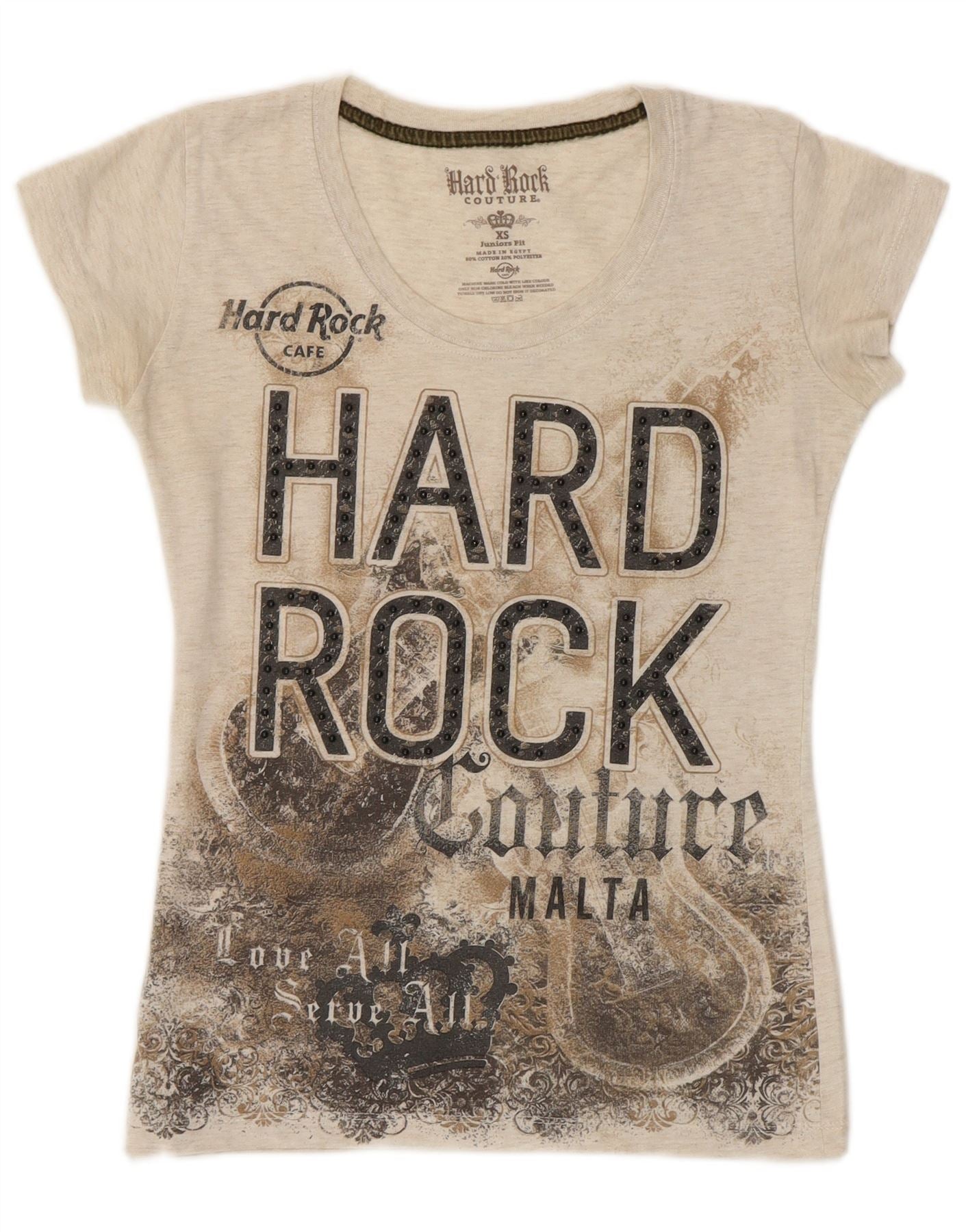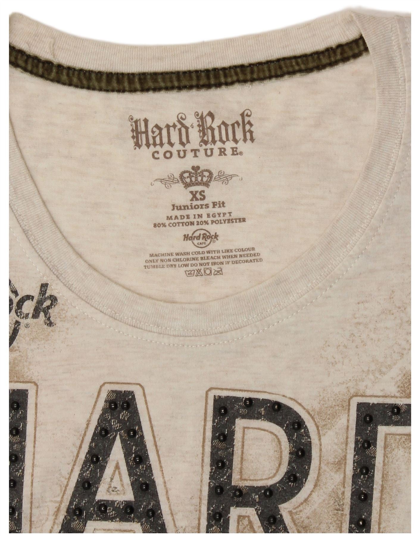 HARD ROCK CAFE Girls Graphic T-Shirt Top 11-12 Years XS Off White Cotton