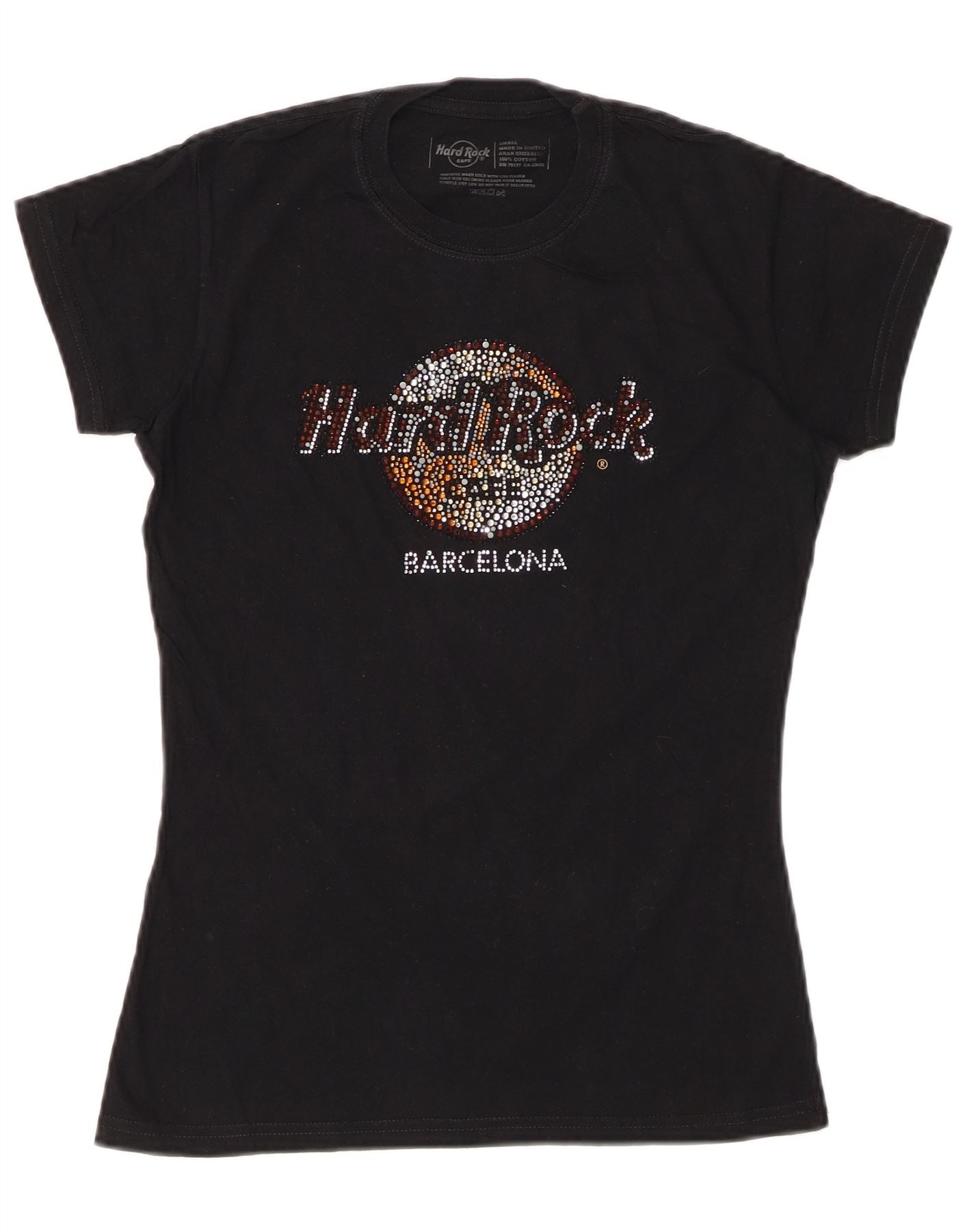 HARD ROCK CAFE Womens Barcelona Graphic T-Shirt Top UK 10 Small Black