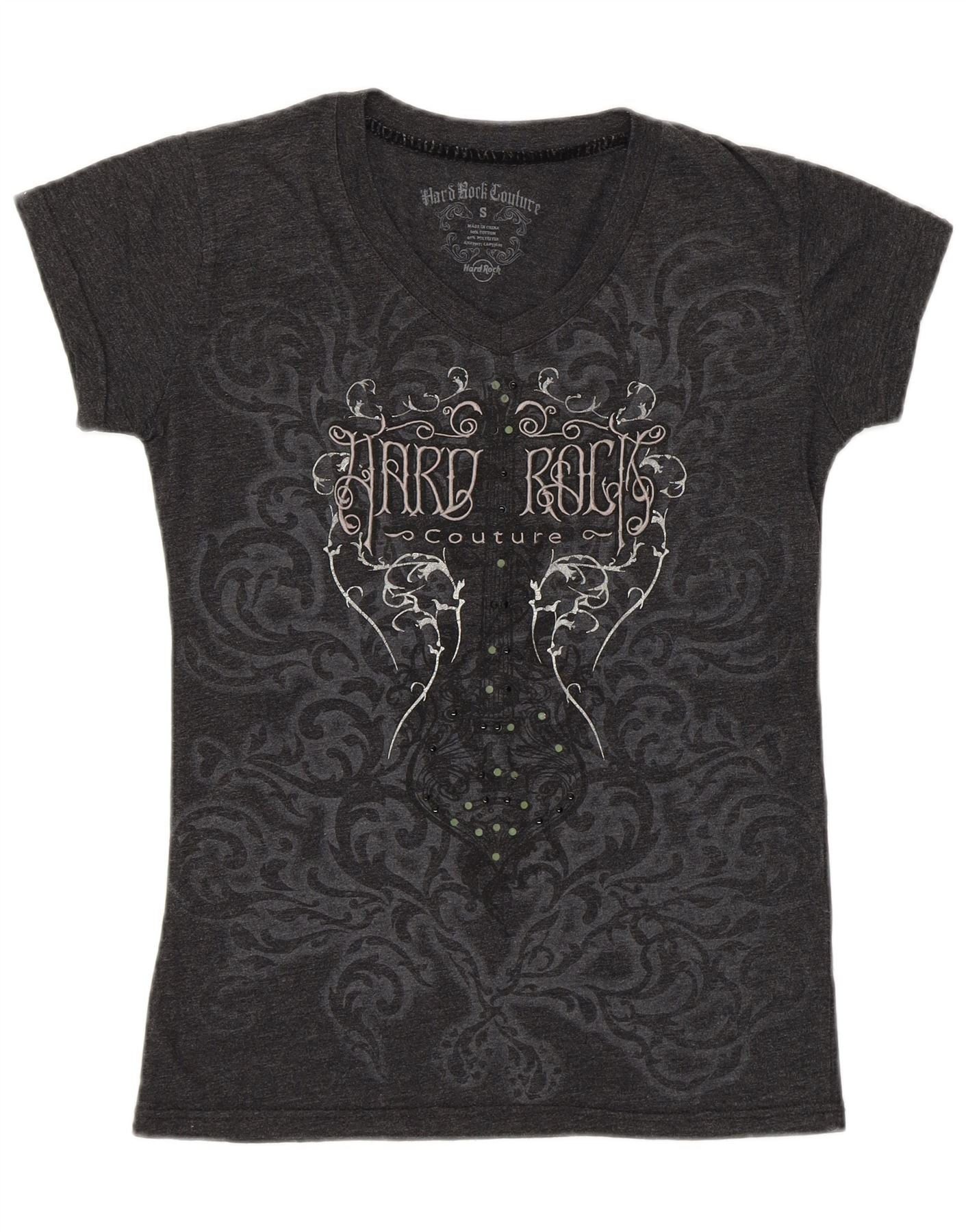HARD ROCK CAFE Womens Couture Graphic T-Shirt Top UK 10 Small Grey Cotton
