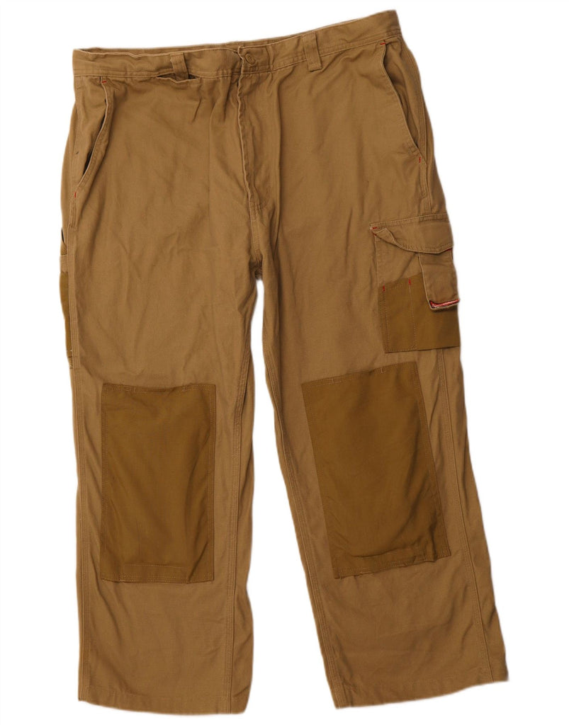 HARD YAKKA Mens Straight Cargo Trousers W40 L26 Khaki Colourblock Cotton