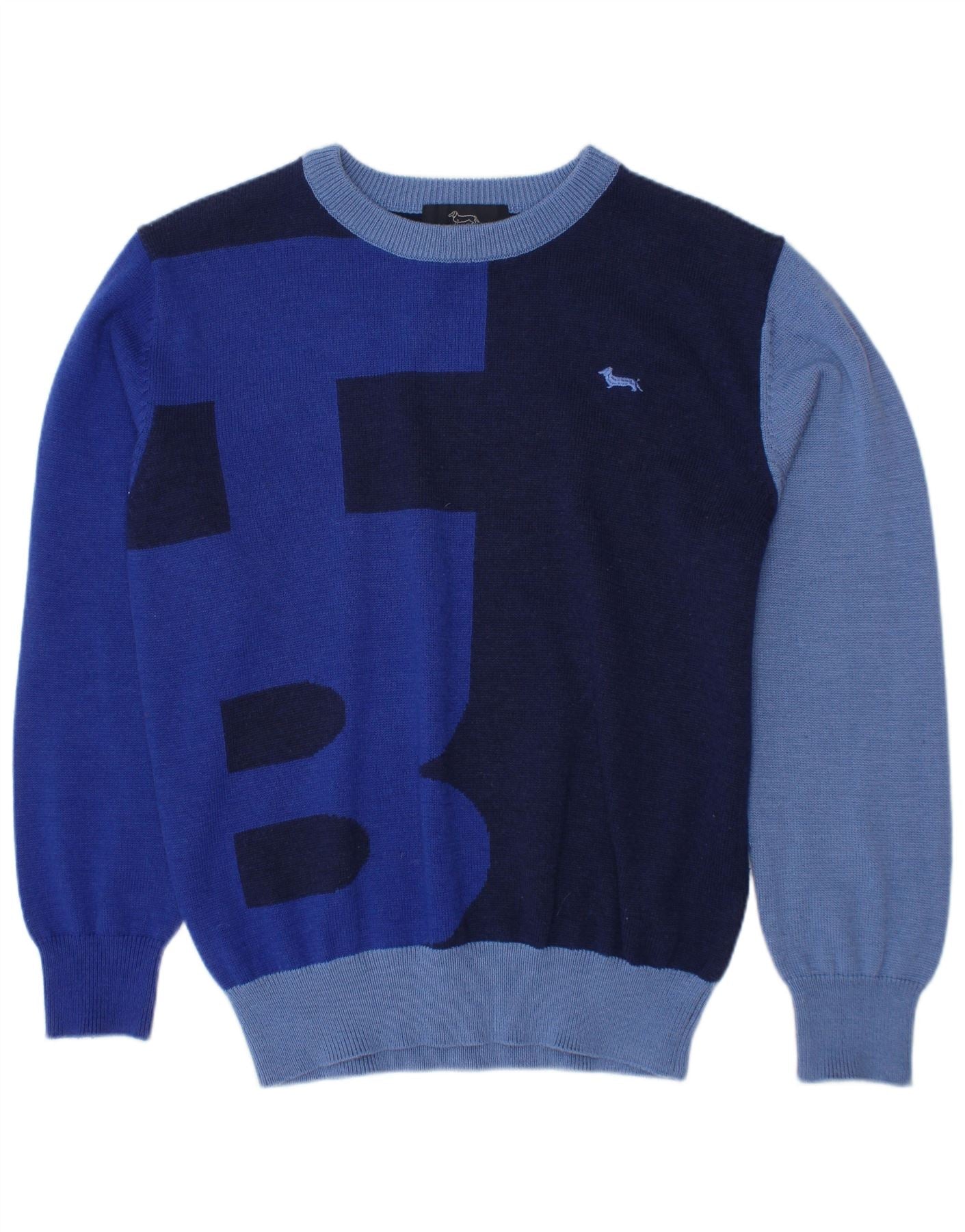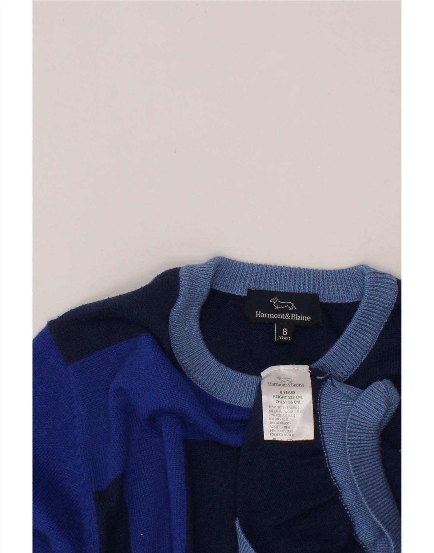 HARMONT & BLAINE Boys Crew Neck Jumper Sweater 7-8 Years Blue Colourblock