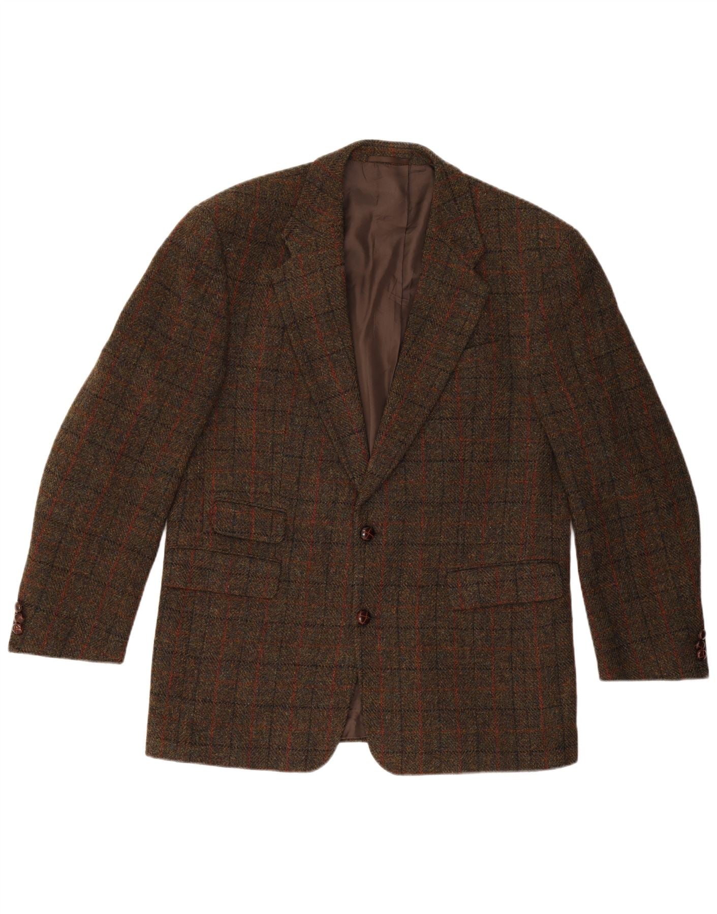 HARRIS TWEED Mens 2 Button Blazer Jacket IT 54 2XL Brown Check New Wool