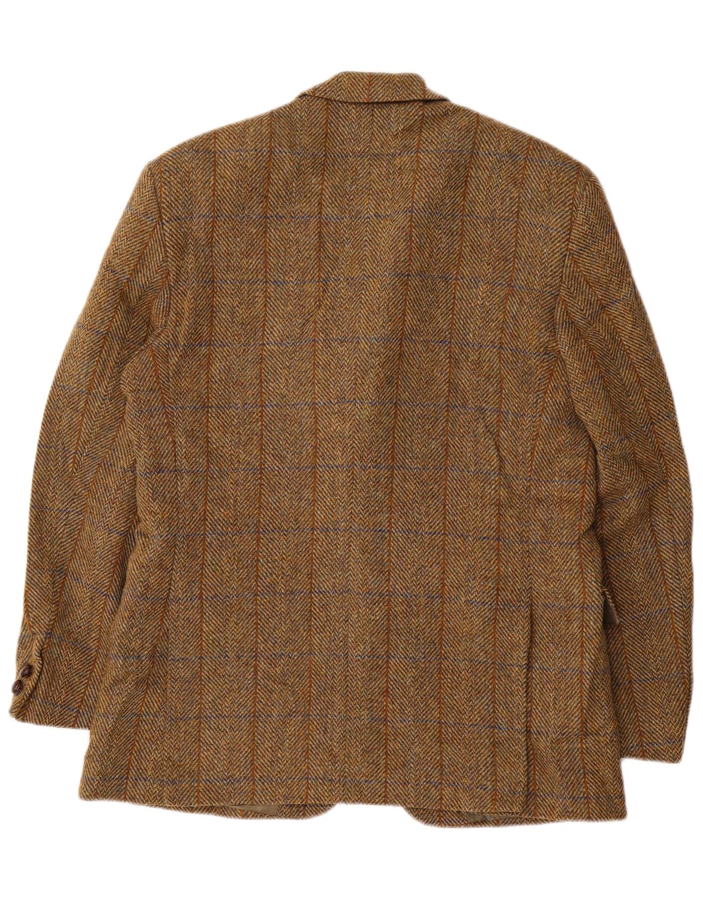HARRIS TWEED Mens 2 Button Blazer Jacket UK 38 Medium Brown Herringbone