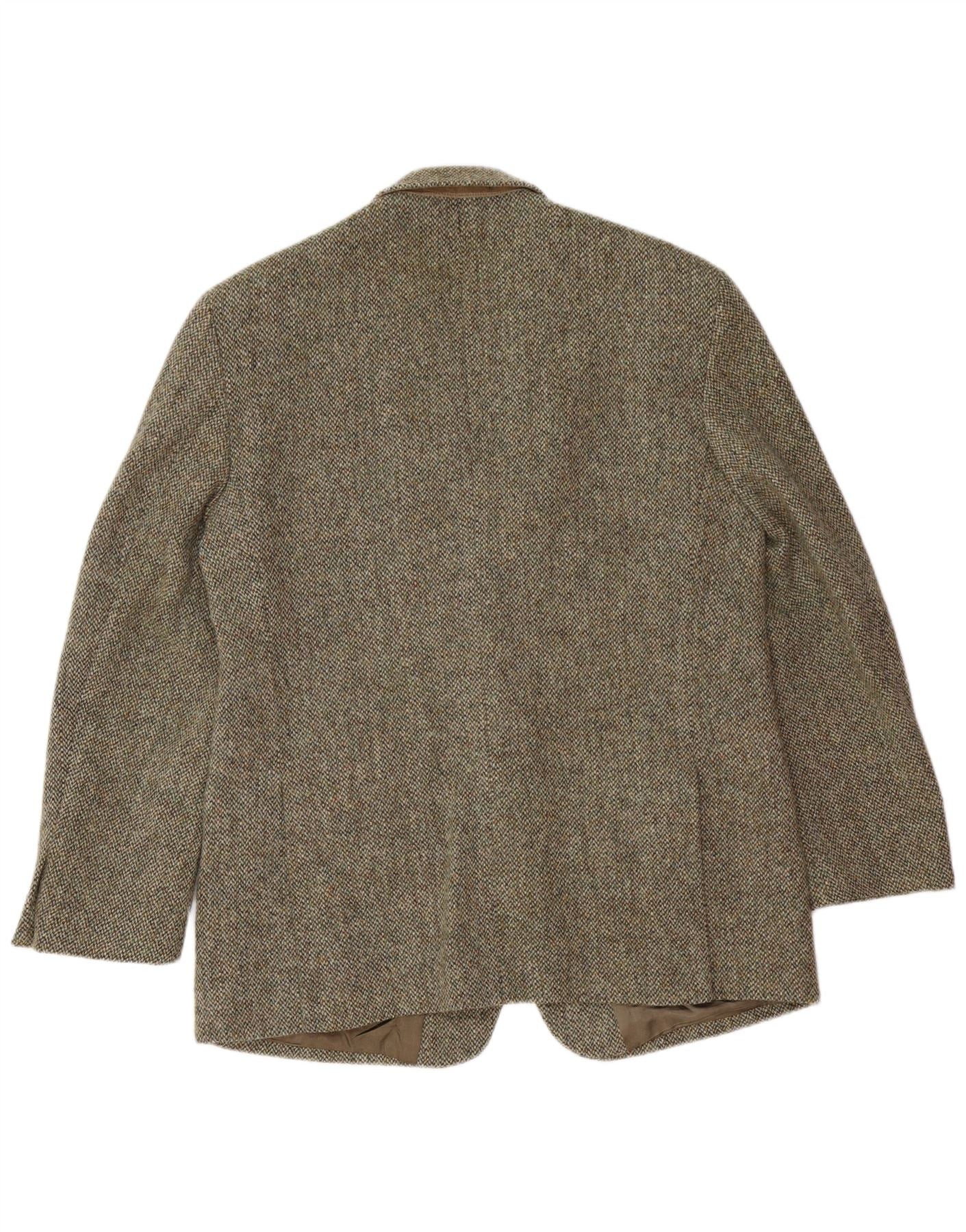 HARRIS TWEED Mens 2 Button Blazer Jacket UK 44 2XL Khaki Wool