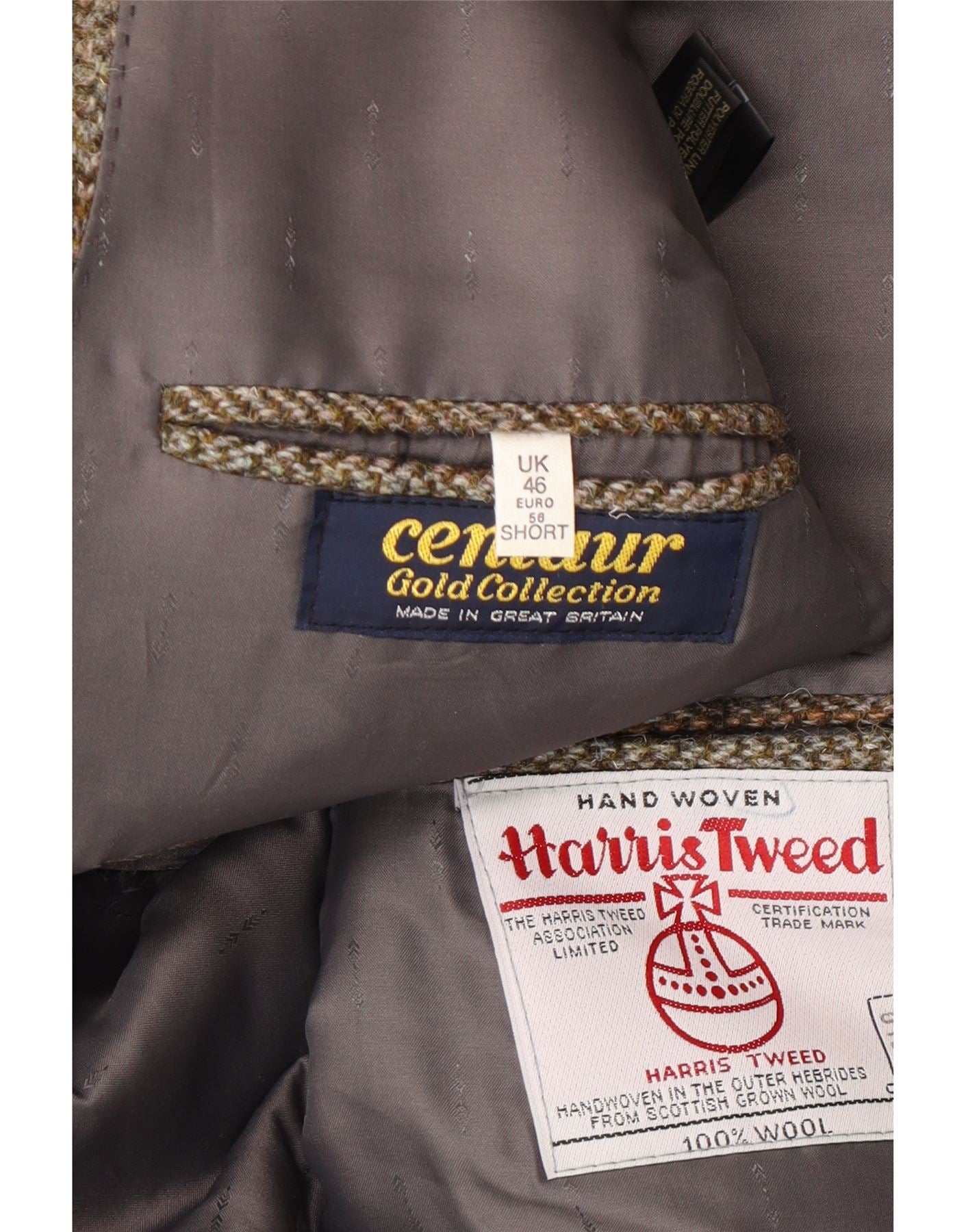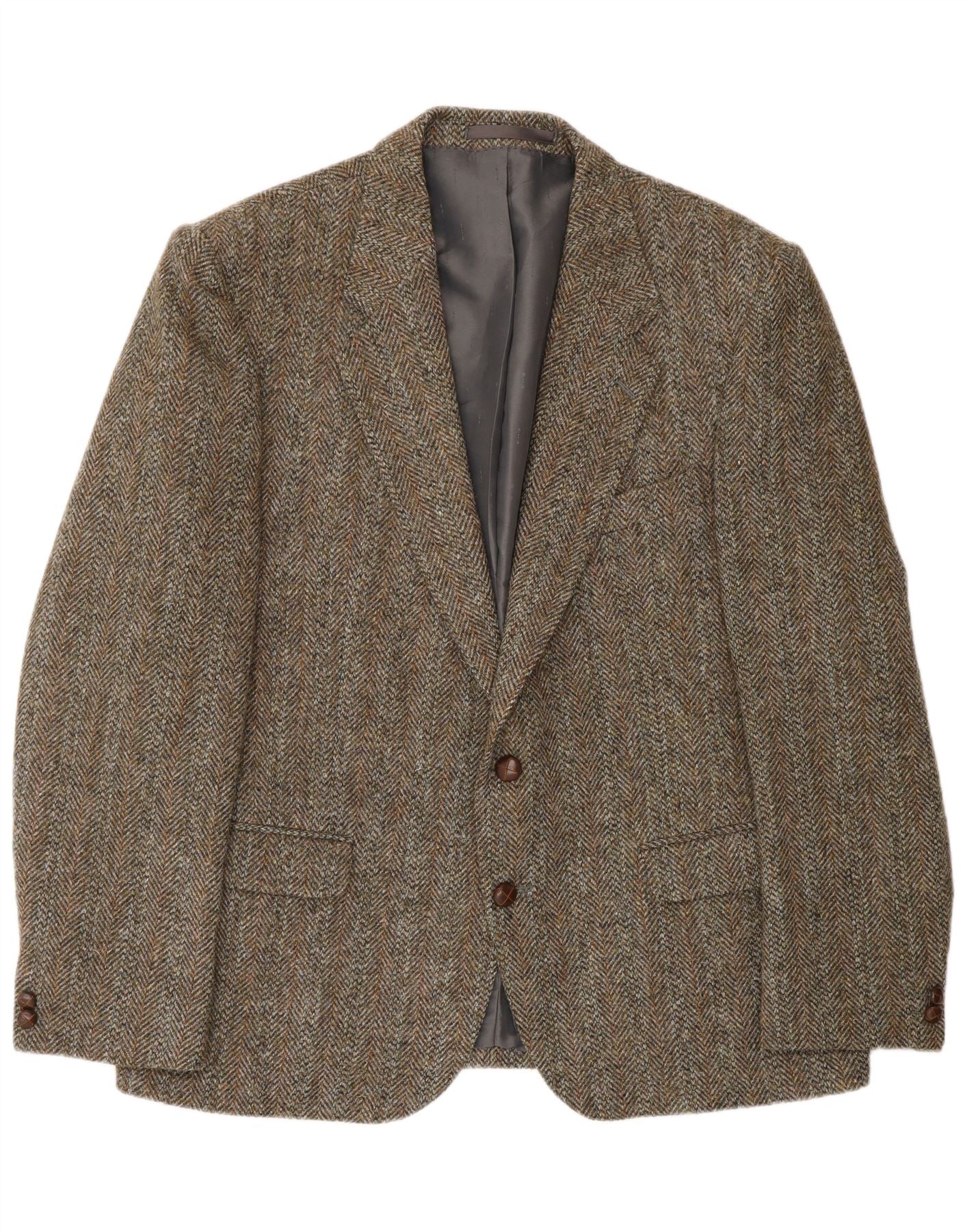HARRIS TWEED Mens 2 Button Blazer Jacket UK 46 3XL Green Herringbone Wool