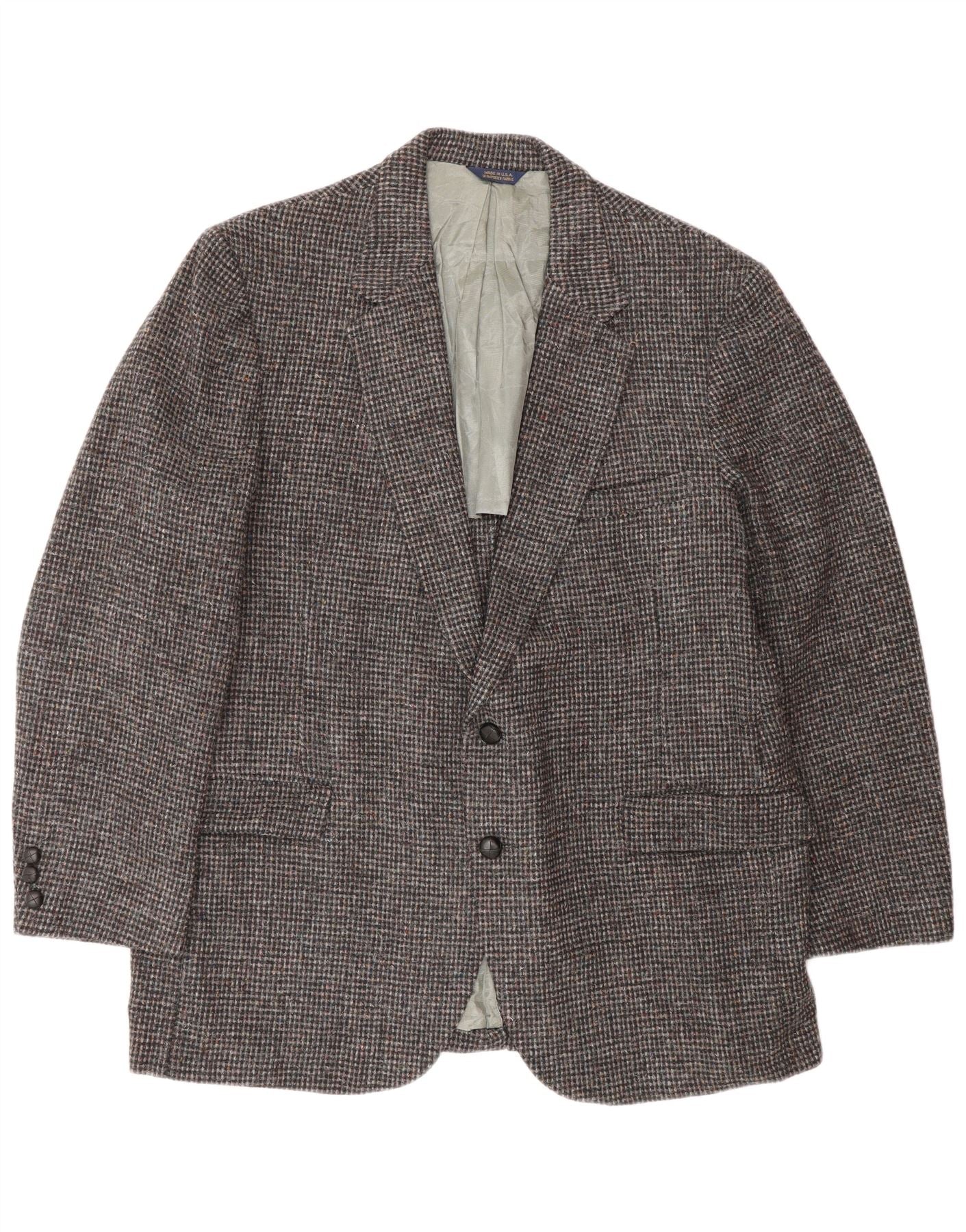 HARRIS TWEED Mens 3 Button Blazer Jacket UK 40 Large Grey Virgin Wool