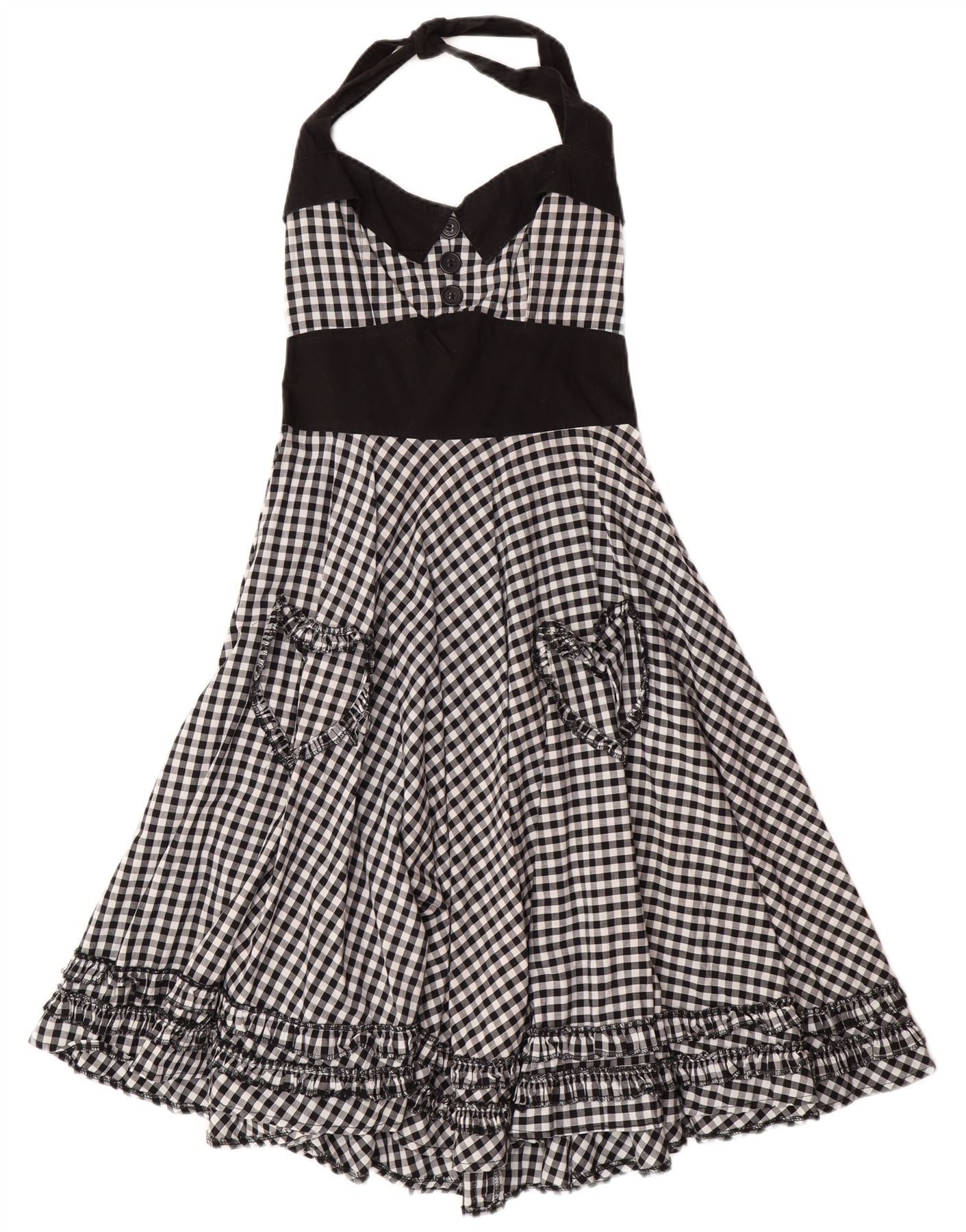 HELL BUNNY Womens Halter Dress UK 8 Small Black Gingham Cotton
