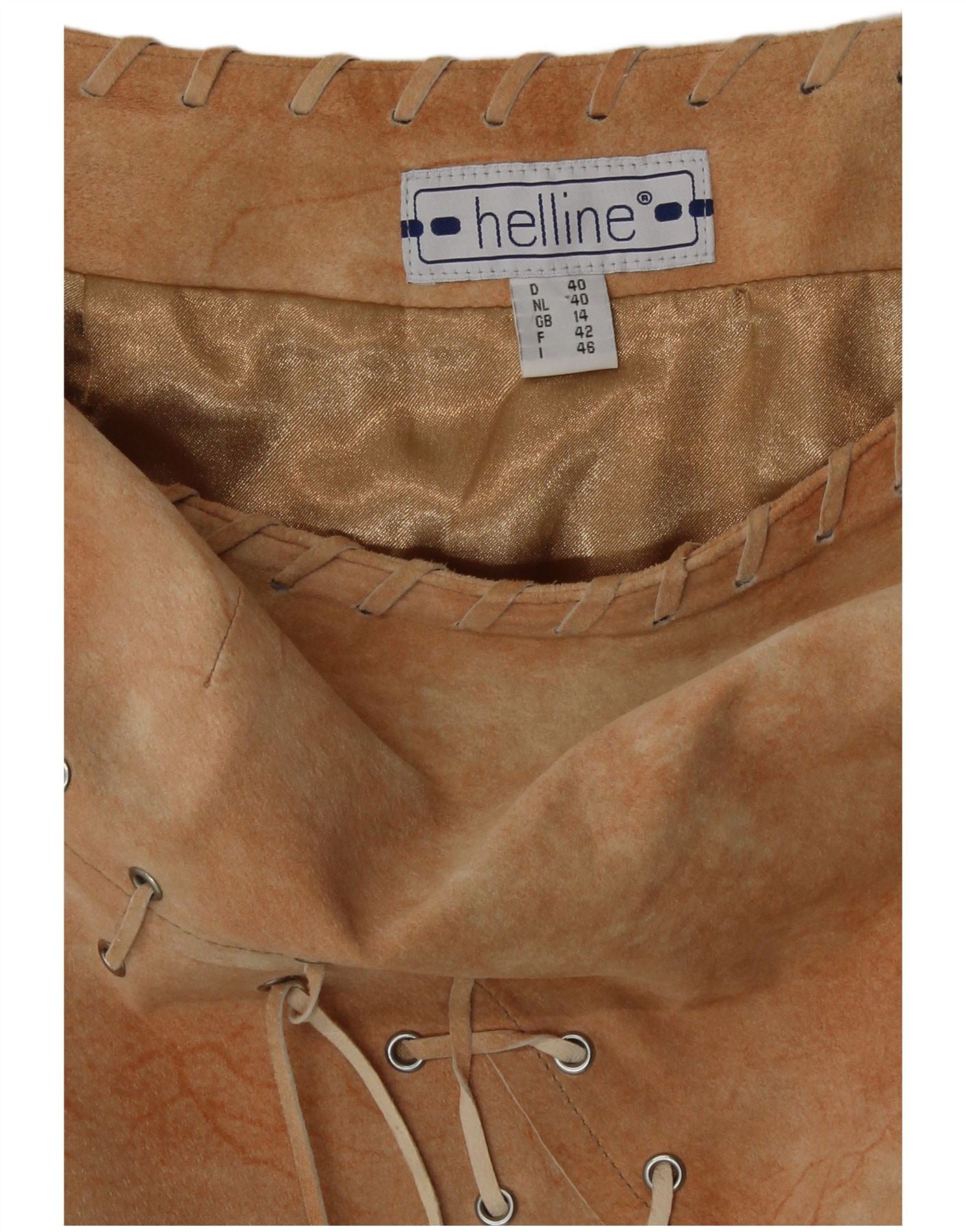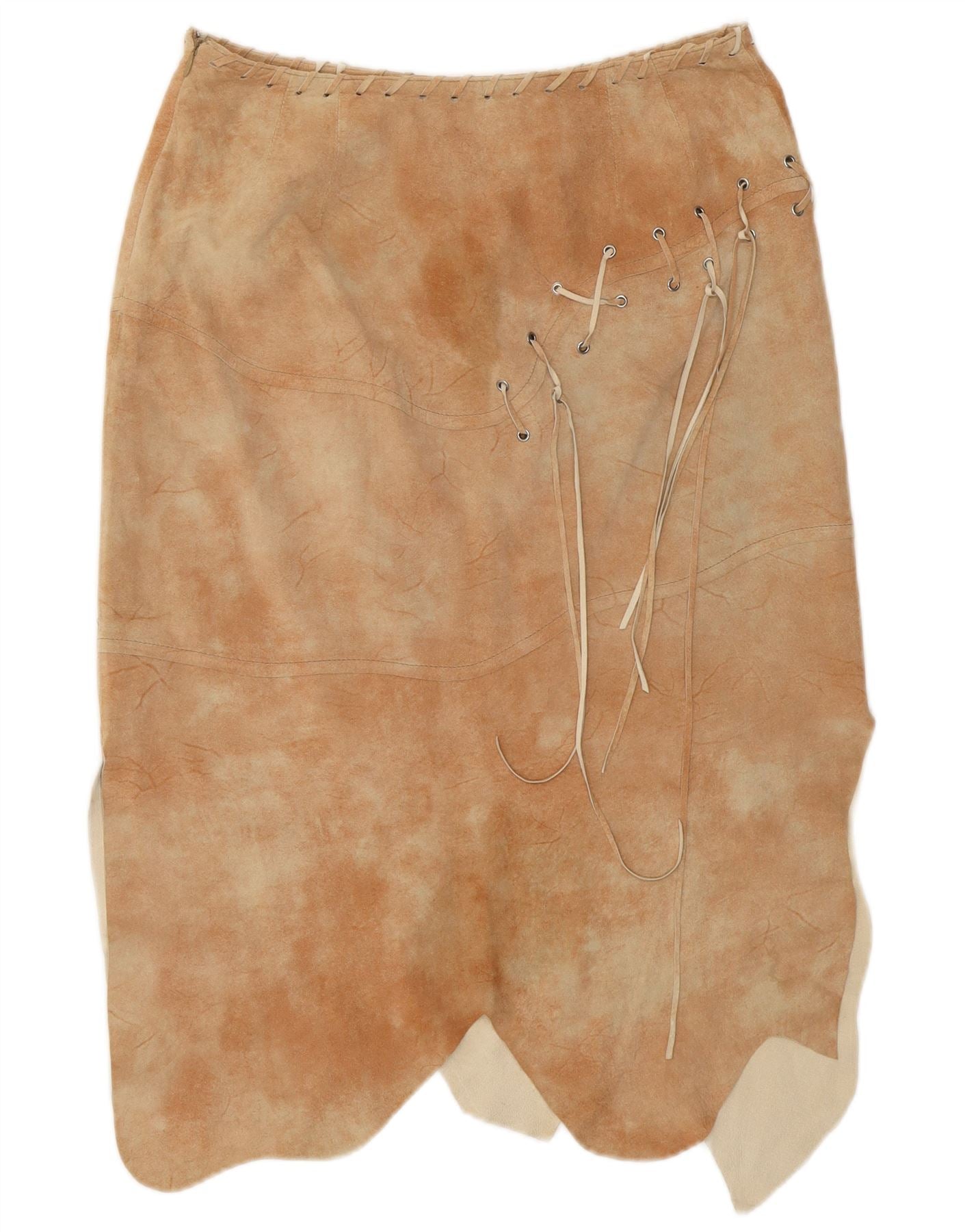 HELLINE Womens Asymmetrical Skirt UK 14 Large W30 Beige Tie Dye Leather
