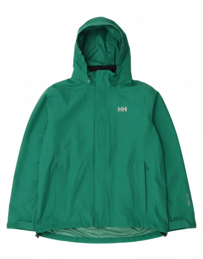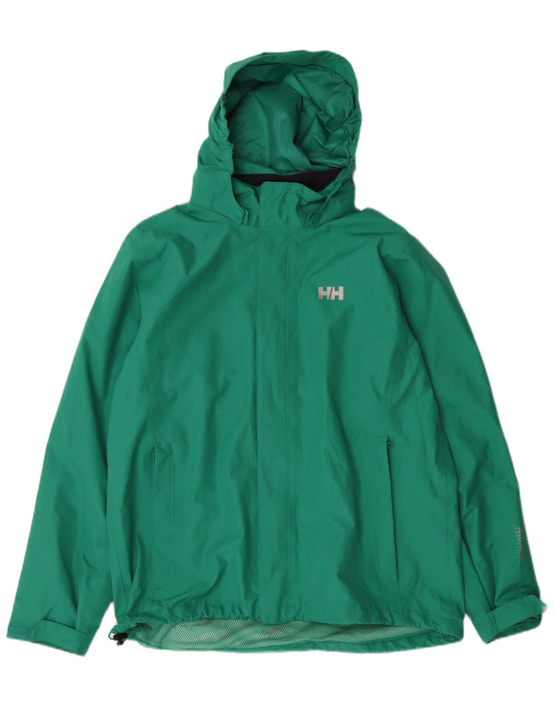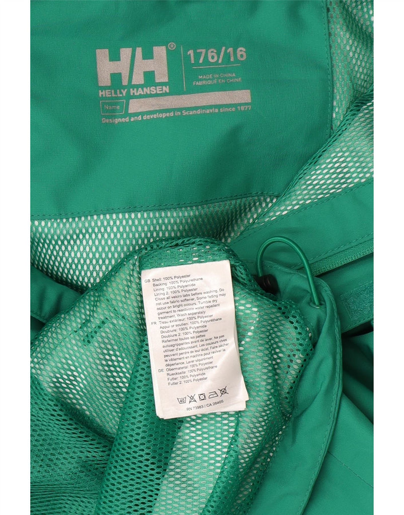 HELLY HANSEN Boys Hooded Rain Jacket 15-16 Years Green Polyester
