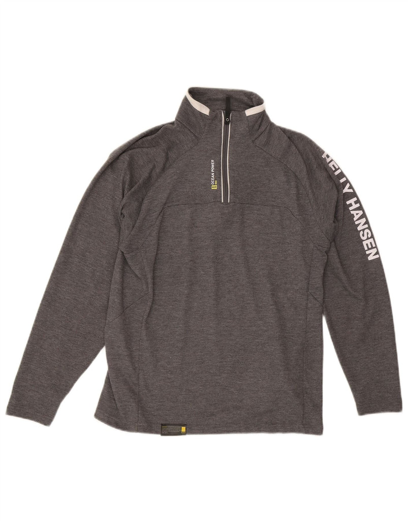 HELLY HANSEN Mens Graphic Zip Neck Pullover Tracksuit Top Small Grey