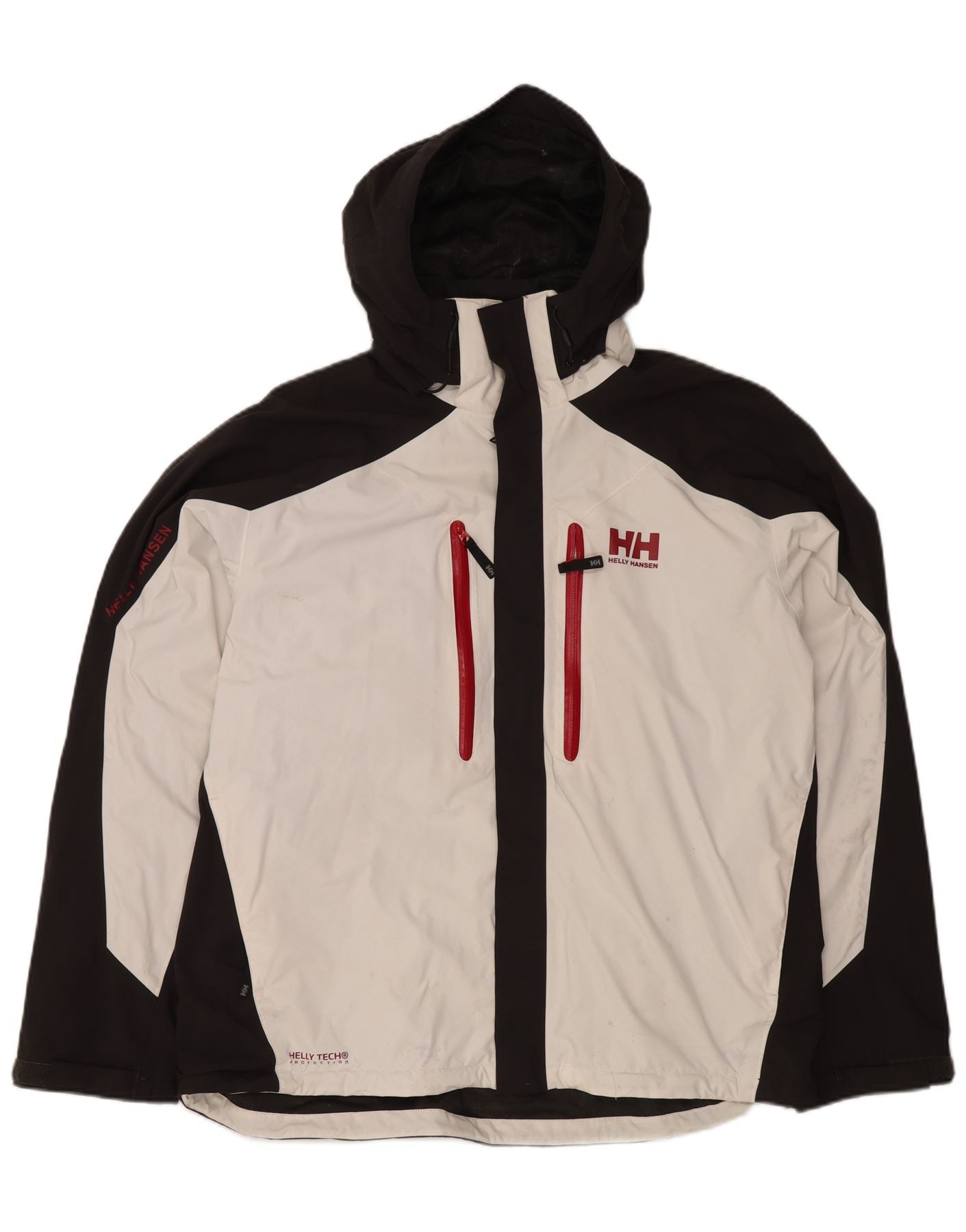 HELLY HANSEN Mens Hooded Waterproof Jacket UK 44 2XL White Colourblock