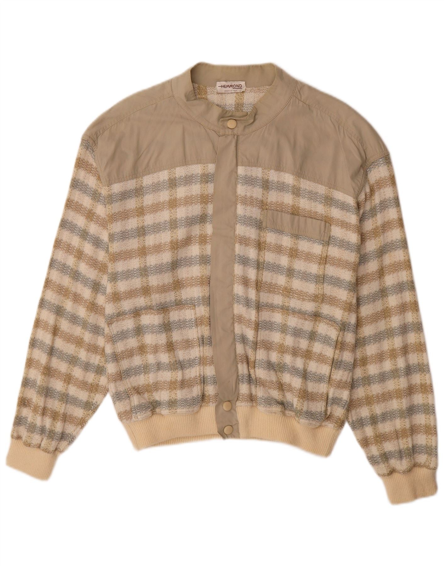 HEMMOND Mens Bomber Jacket UK 38 Medium Beige Check Cotton