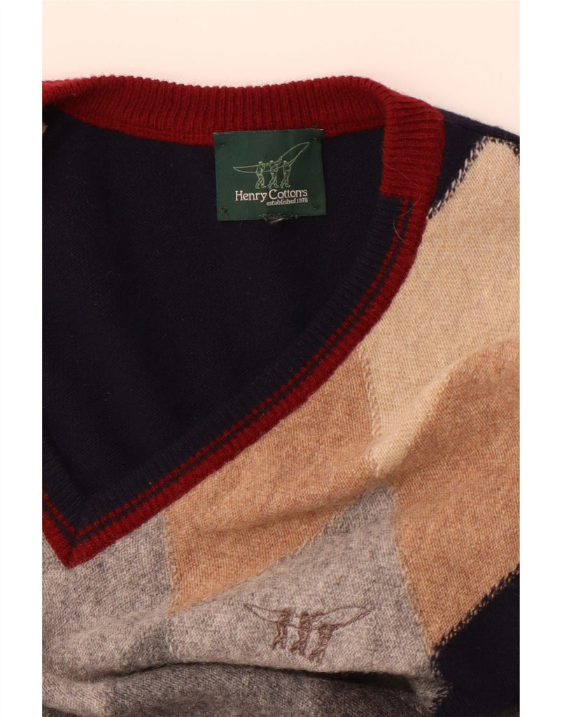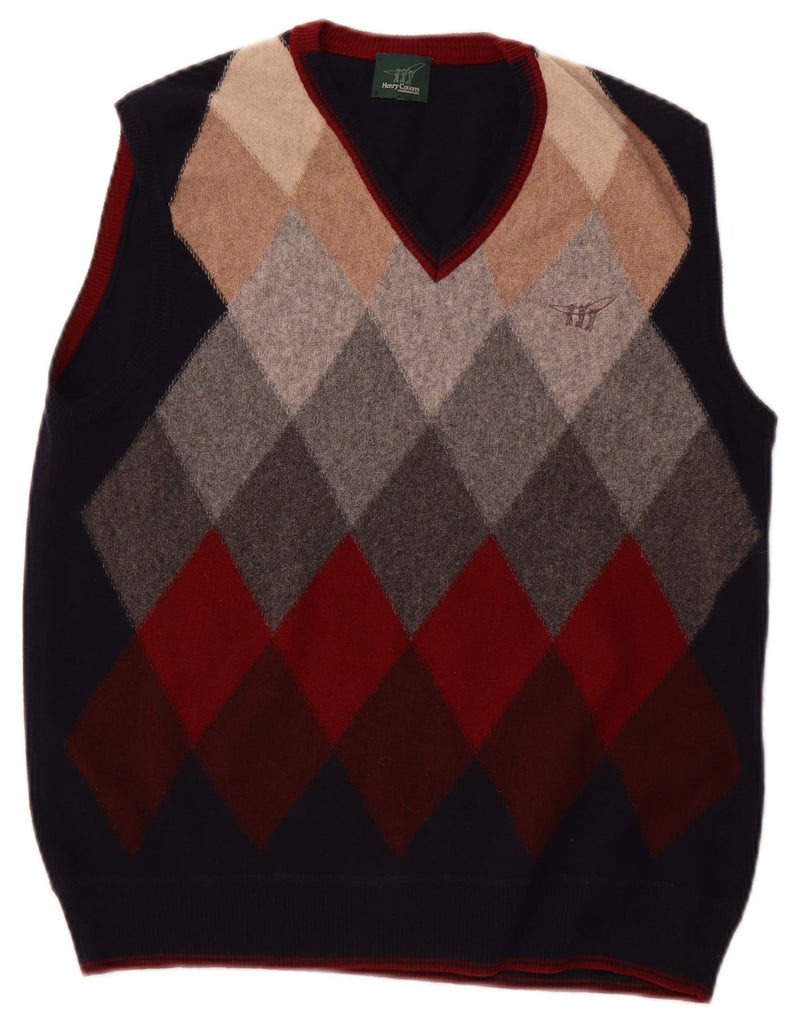 HENRY COTTONS Mens Vest Tank Top Medium Navy Blue Argyle/Diamond