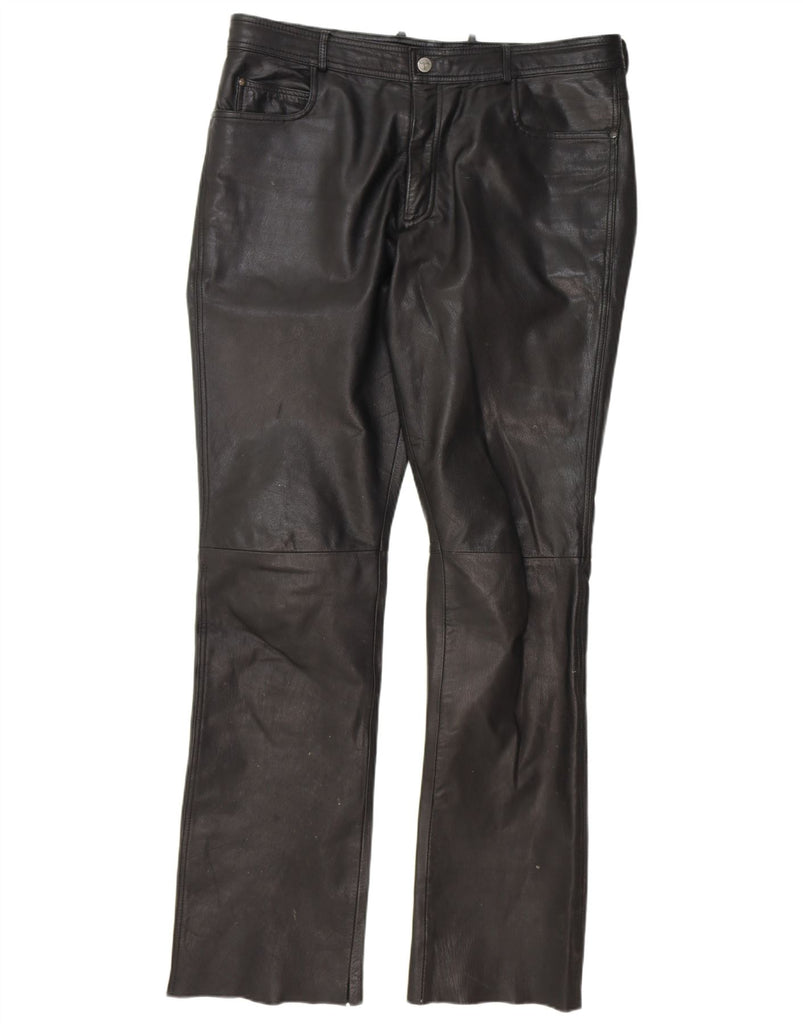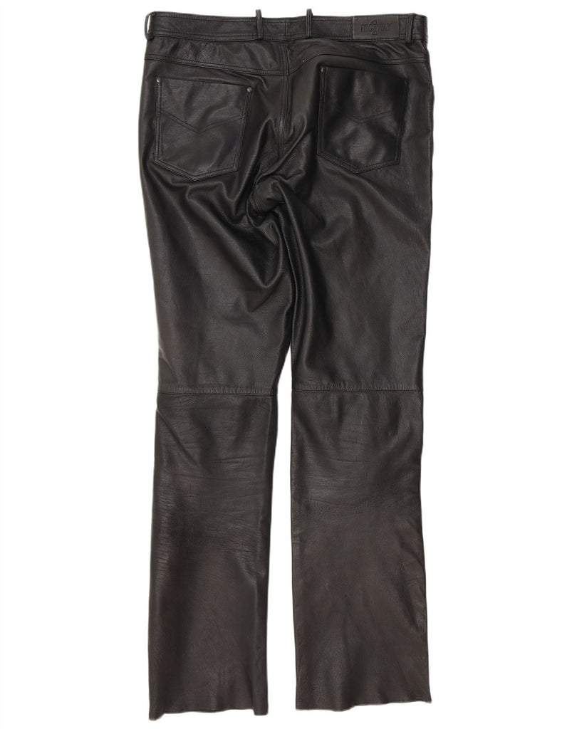 HIGHWAY 1 Mens Straight Leather Trousers IT 54 2XL W36 L35 Black Leather