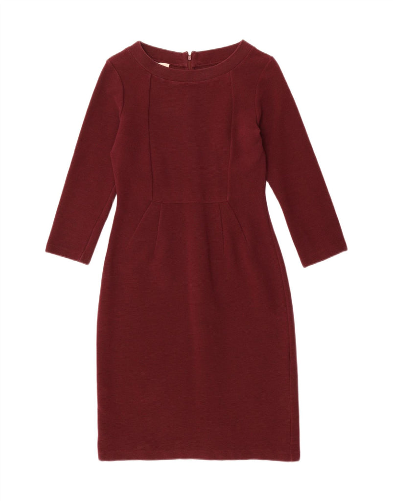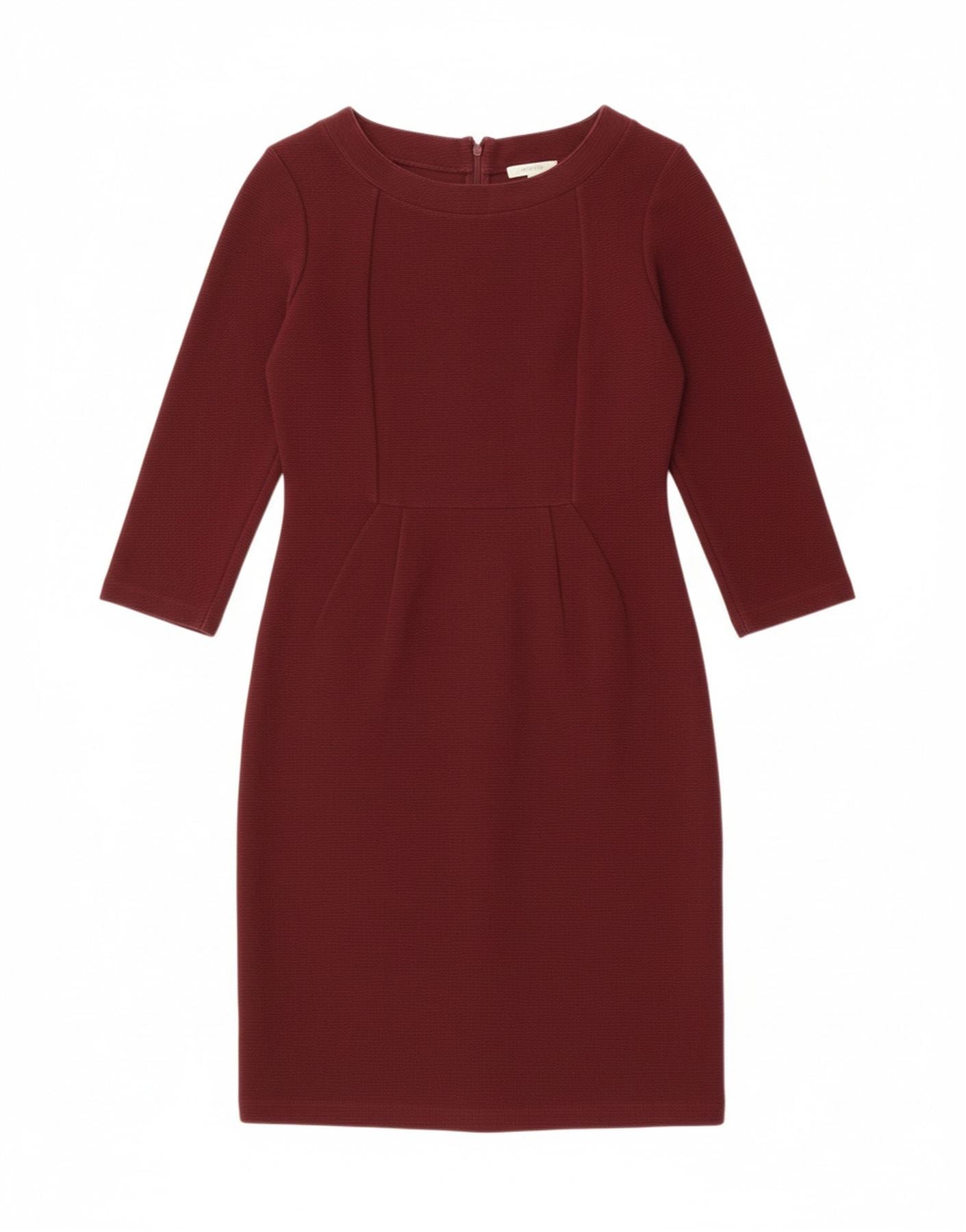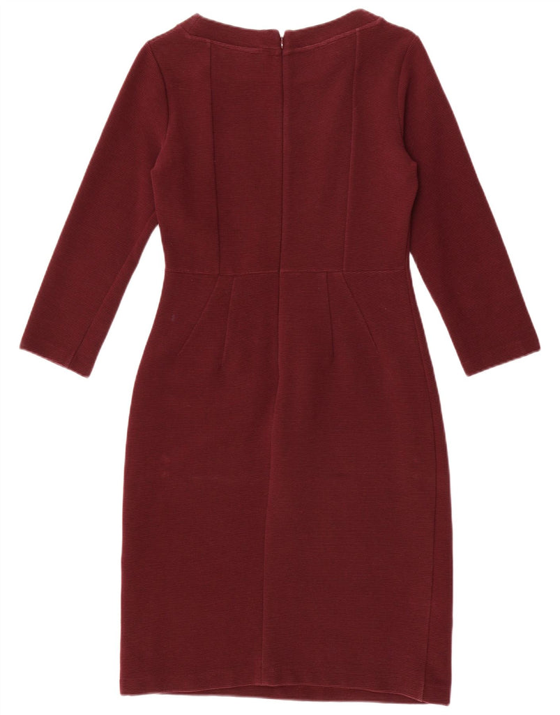 HOBBS Womens 3/4 Sleeve Sheath Dress UK 10 Small Maroon Cotton