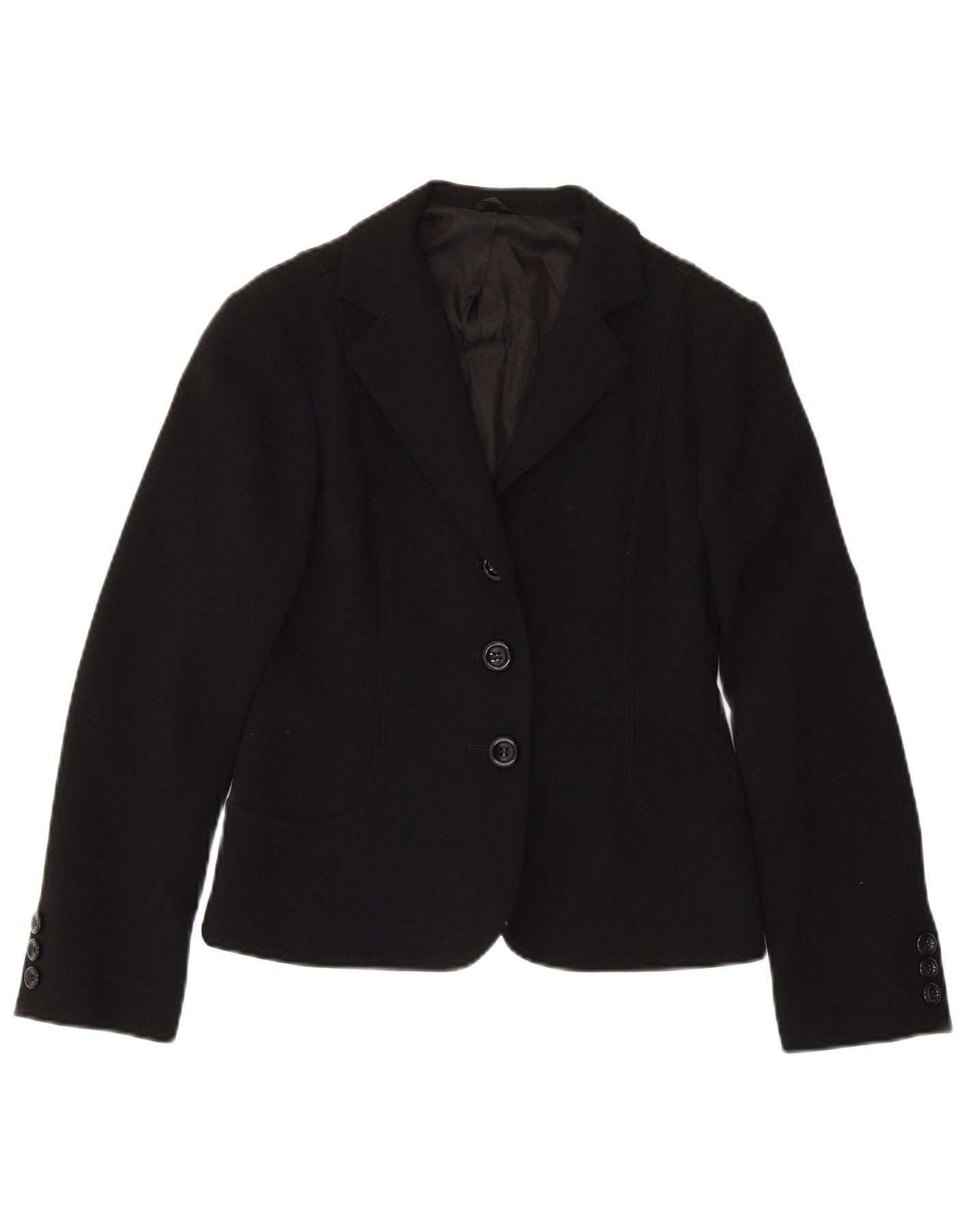 HOBBS Womens 3 Button Blazer Jacket UK 8 Small Black Virgin Wool