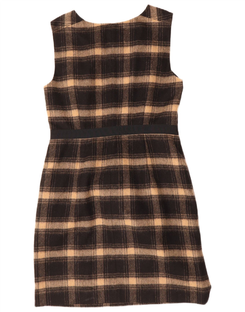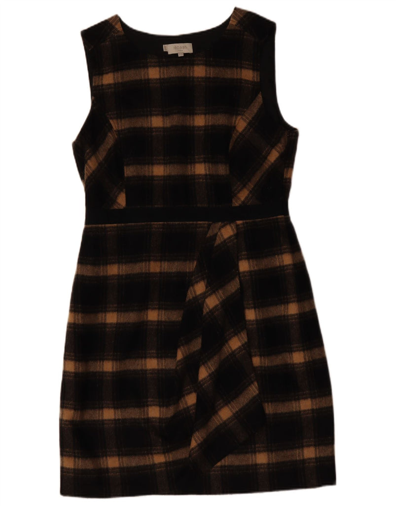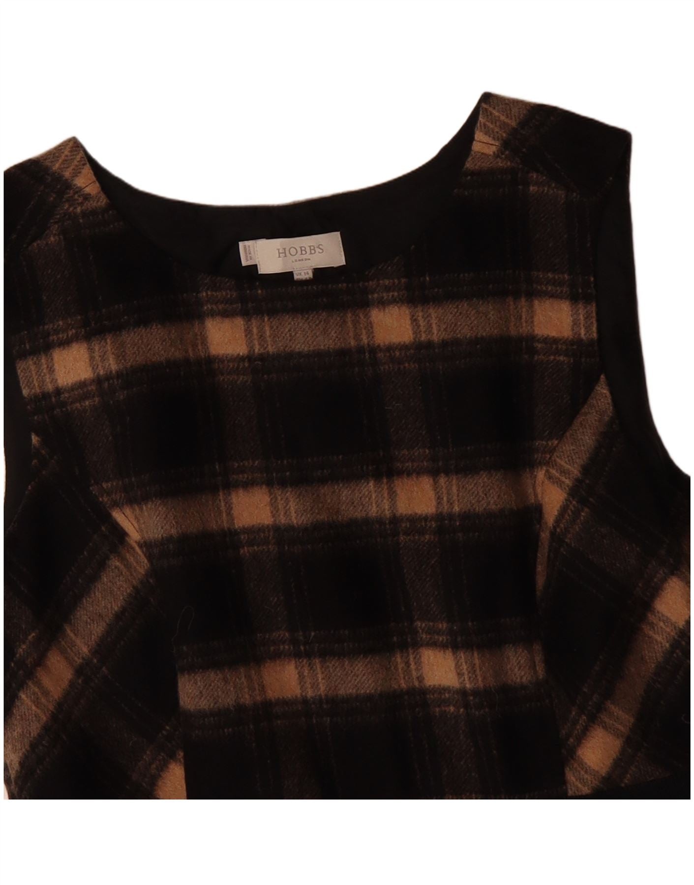 HOBBS Womens Sleeveless Sheath Dress UK 14 Medium Brown Check Wool