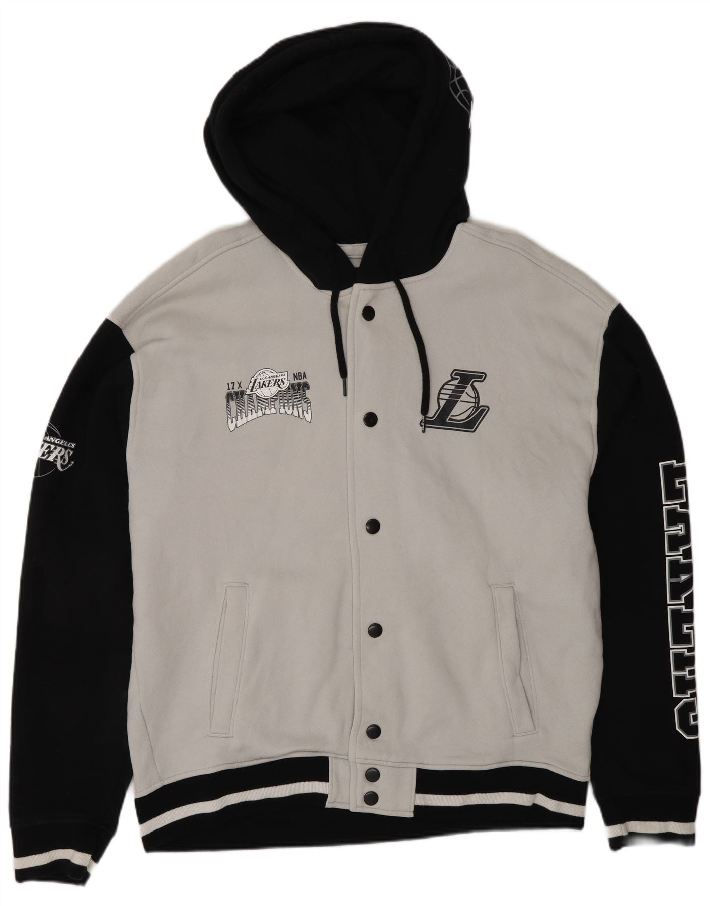 HOLLISTER Mens Graphic Hooded Varsity Jacket UK 42 XL White Colourblock