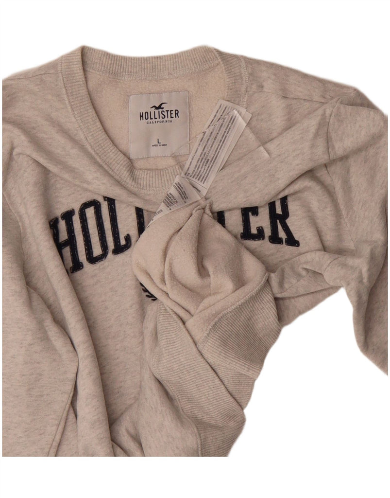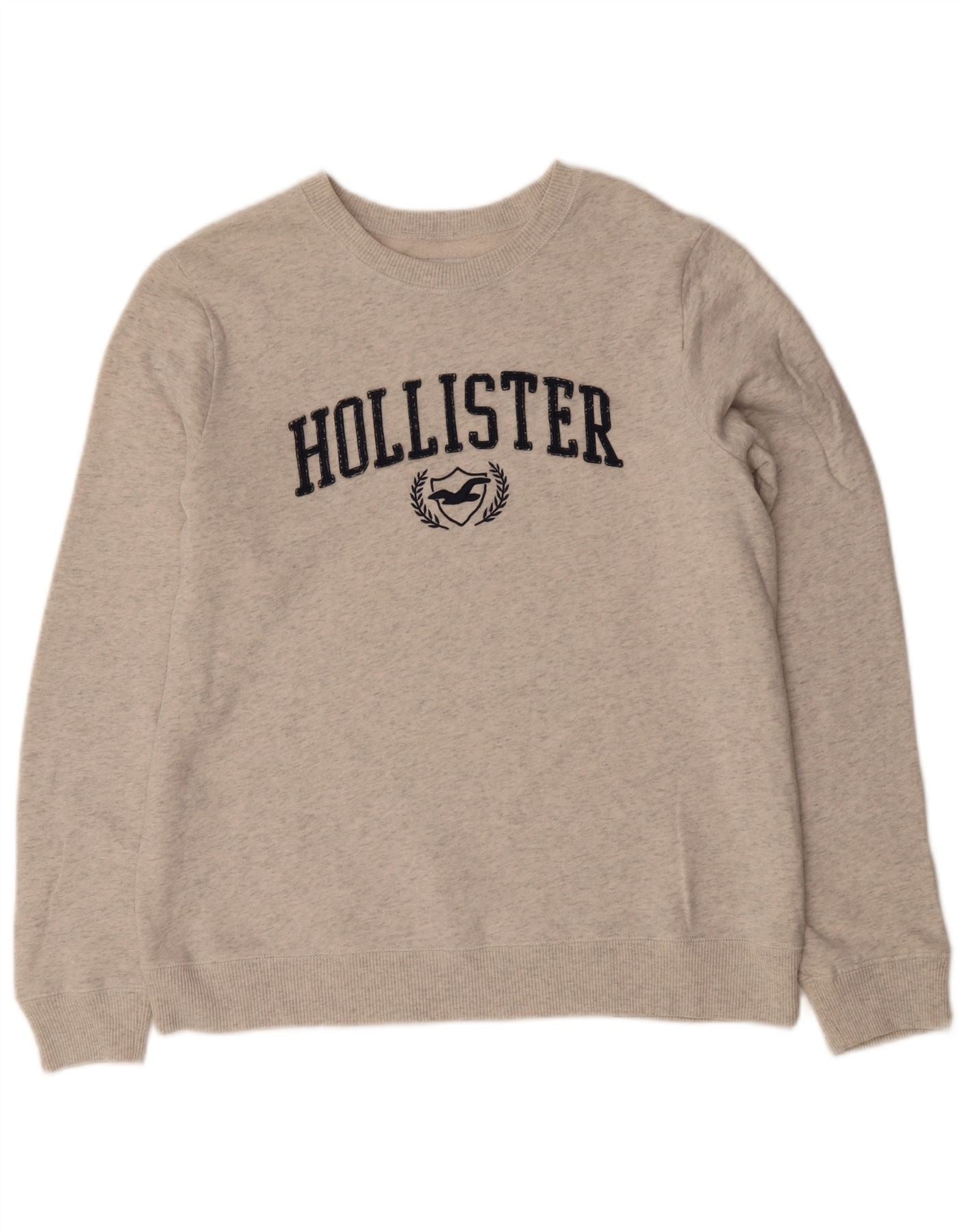 HOLLISTER Mens Graphic Sweatshirt Jumper Large Grey Flecked Cotton