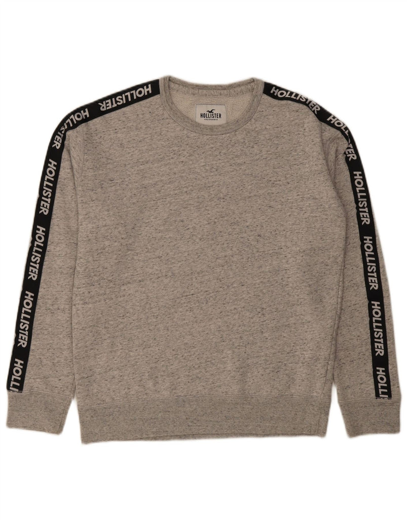 HOLLISTER Mens Graphic Sweatshirt Jumper Medium Grey Flecked Cotton