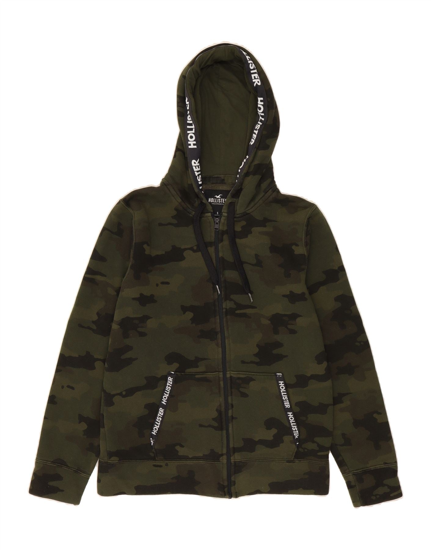 HOLLISTER Mens Graphic Zip Hoodie Sweater Small Khaki Camouflage Cotton