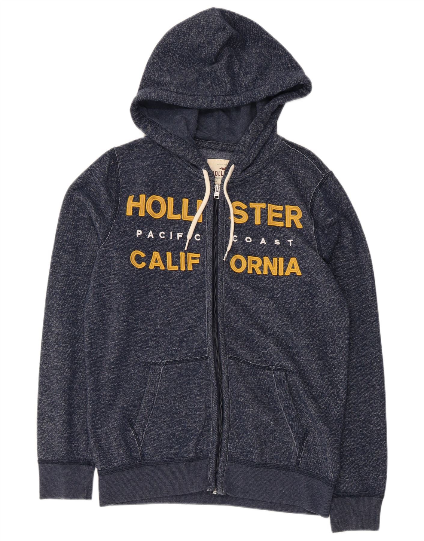 HOLLISTER Mens Graphic Zip Hoodie Sweater Small Navy Blue Flecked Cotton