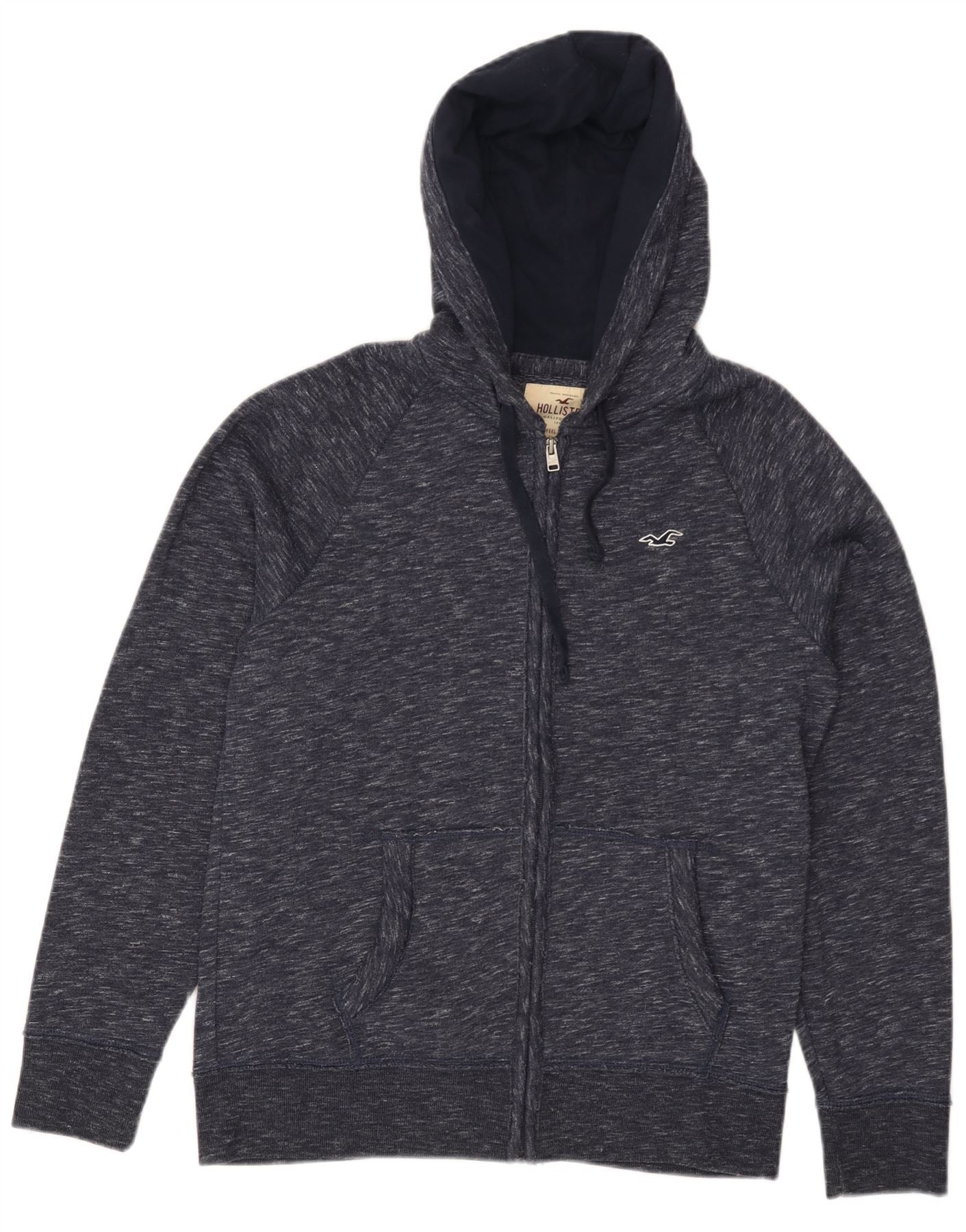 HOLLISTER Mens Zip Hoodie Sweater Small Navy Blue Flecked Cotton