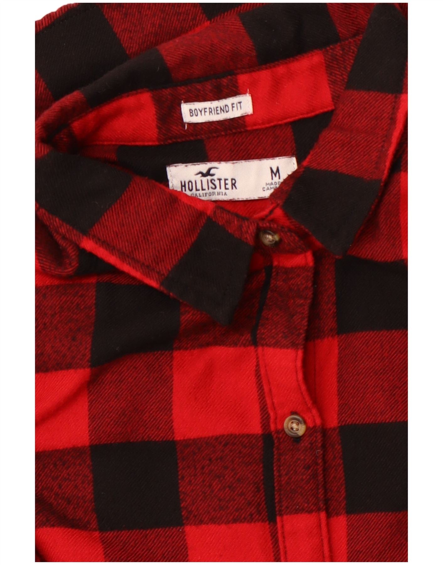 HOLLISTER Womens Boyfriend Fit Flannel Shirt UK 14 Medium Red Gingham