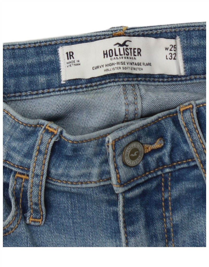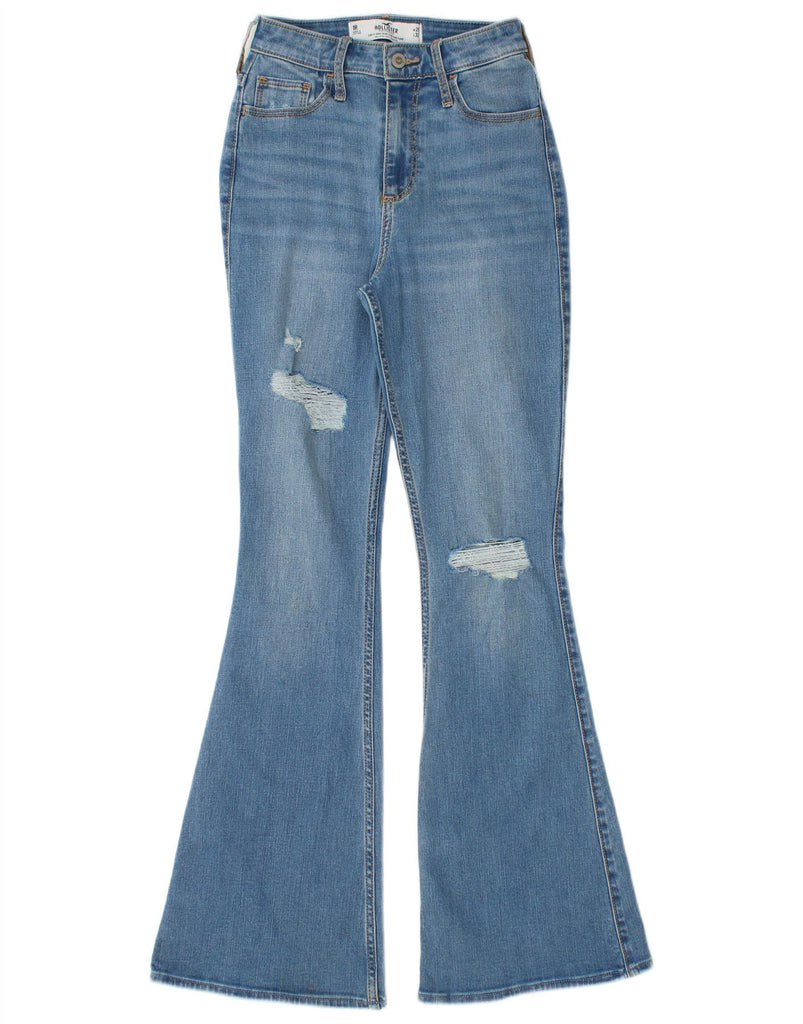 HOLLISTER Womens Curvy Distressed High Rise Flared Jeans W25 L32 Blue