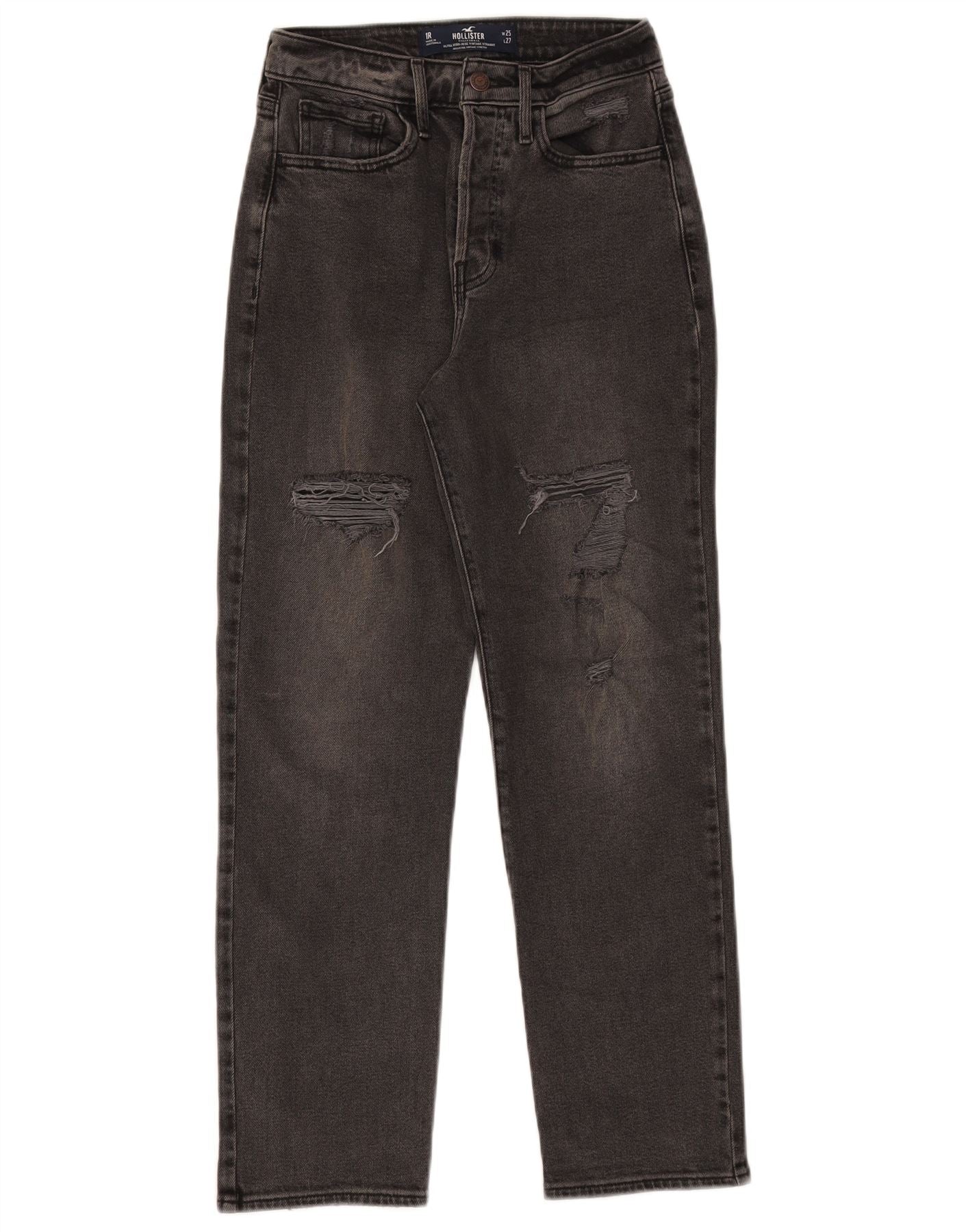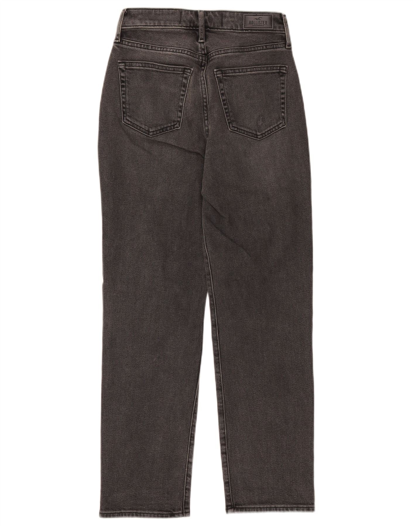HOLLISTER Womens Distressed High Rise Straight Jeans W25 L27 Black Cotton