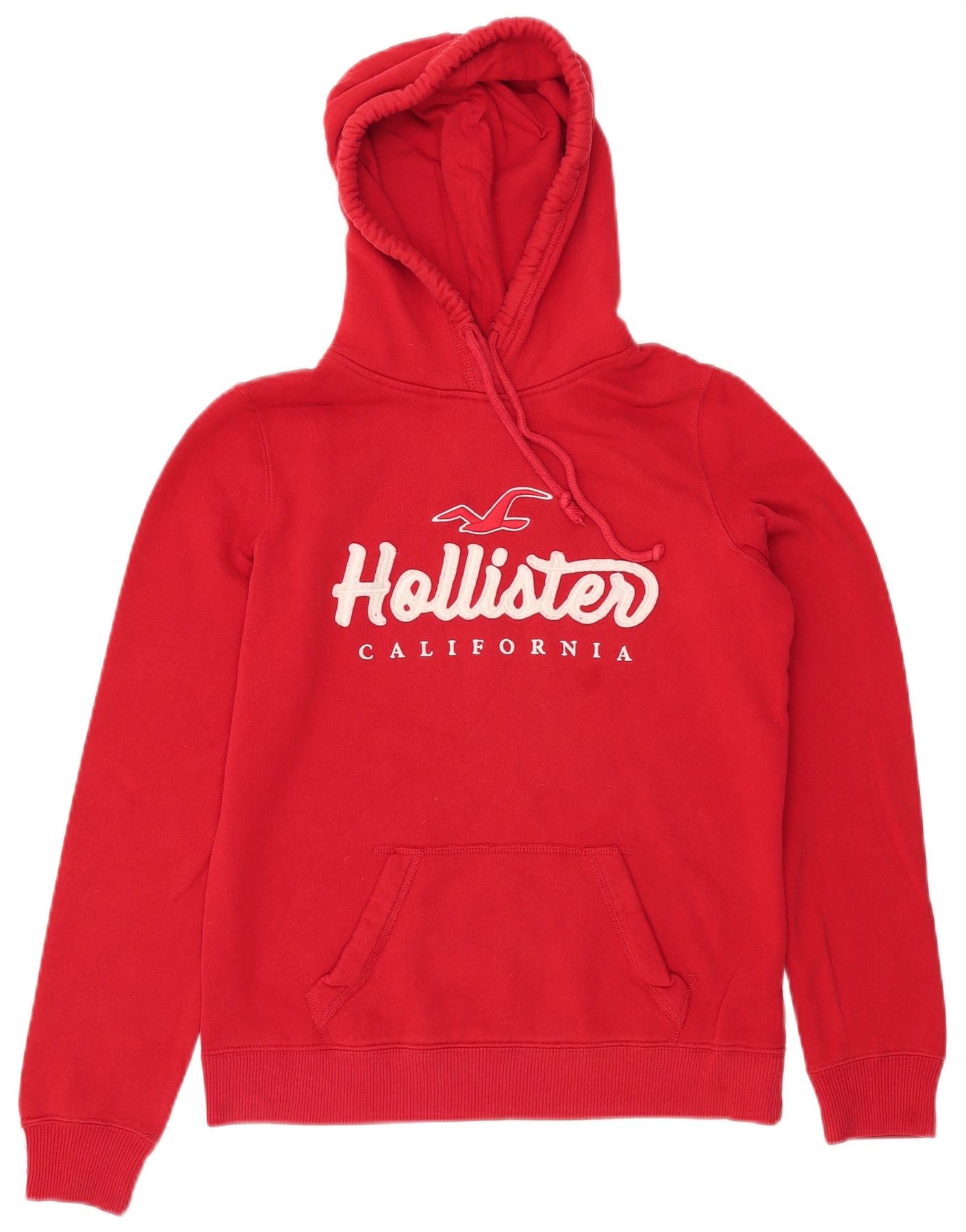 HOLLISTER Womens Graphic Hoodie Jumper UK 10 Small Red Cotton