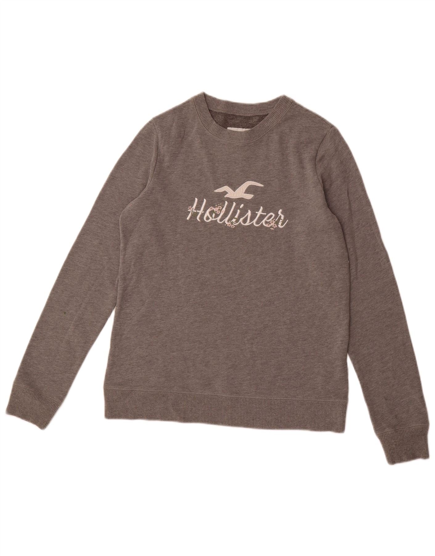 HOLLISTER Womens Graphic Sweatshirt Jumper UK 10 Small Grey Cotton