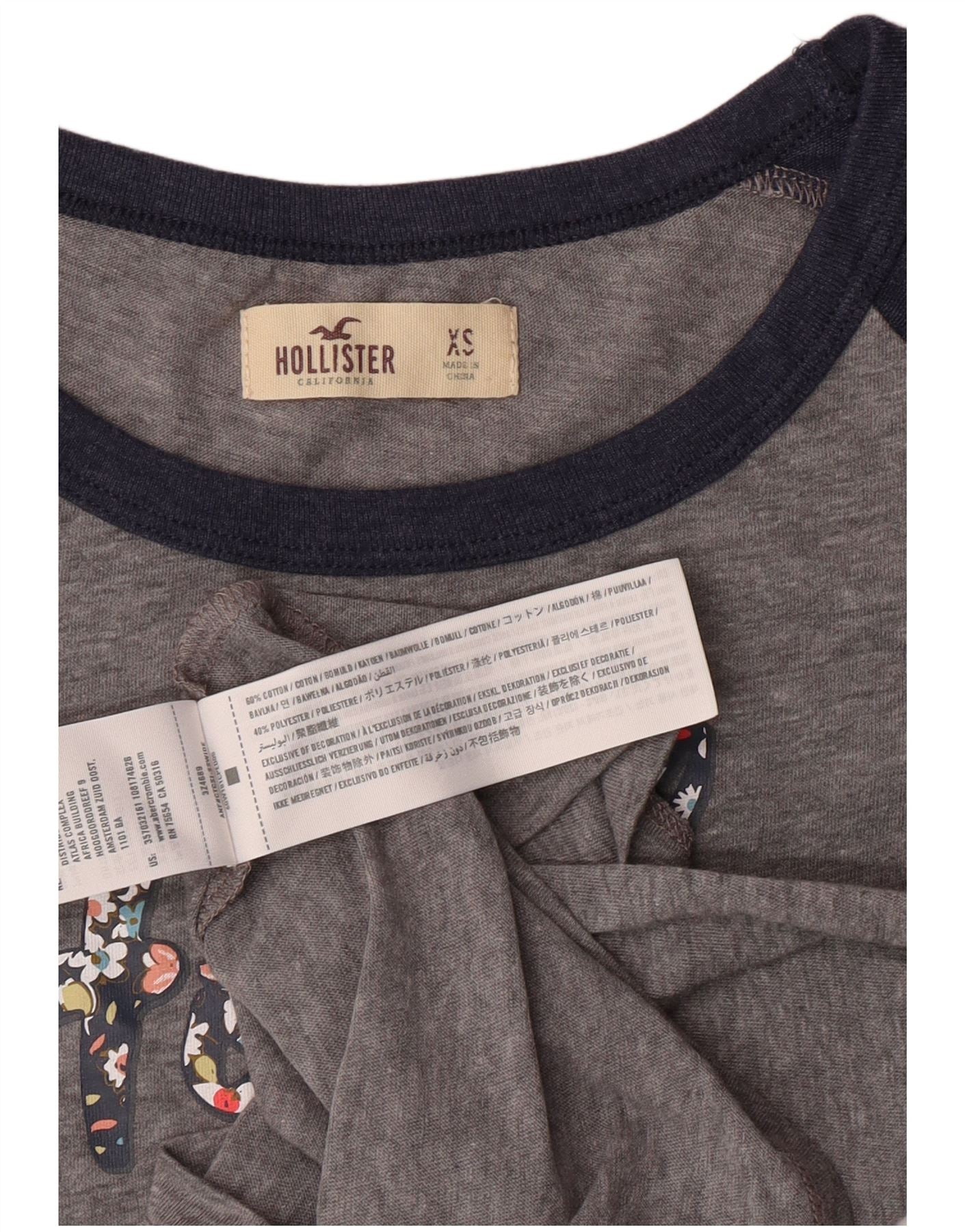 HOLLISTER Womens Graphic T-Shirt Top UK 6 XS Grey Colourblock Cotton