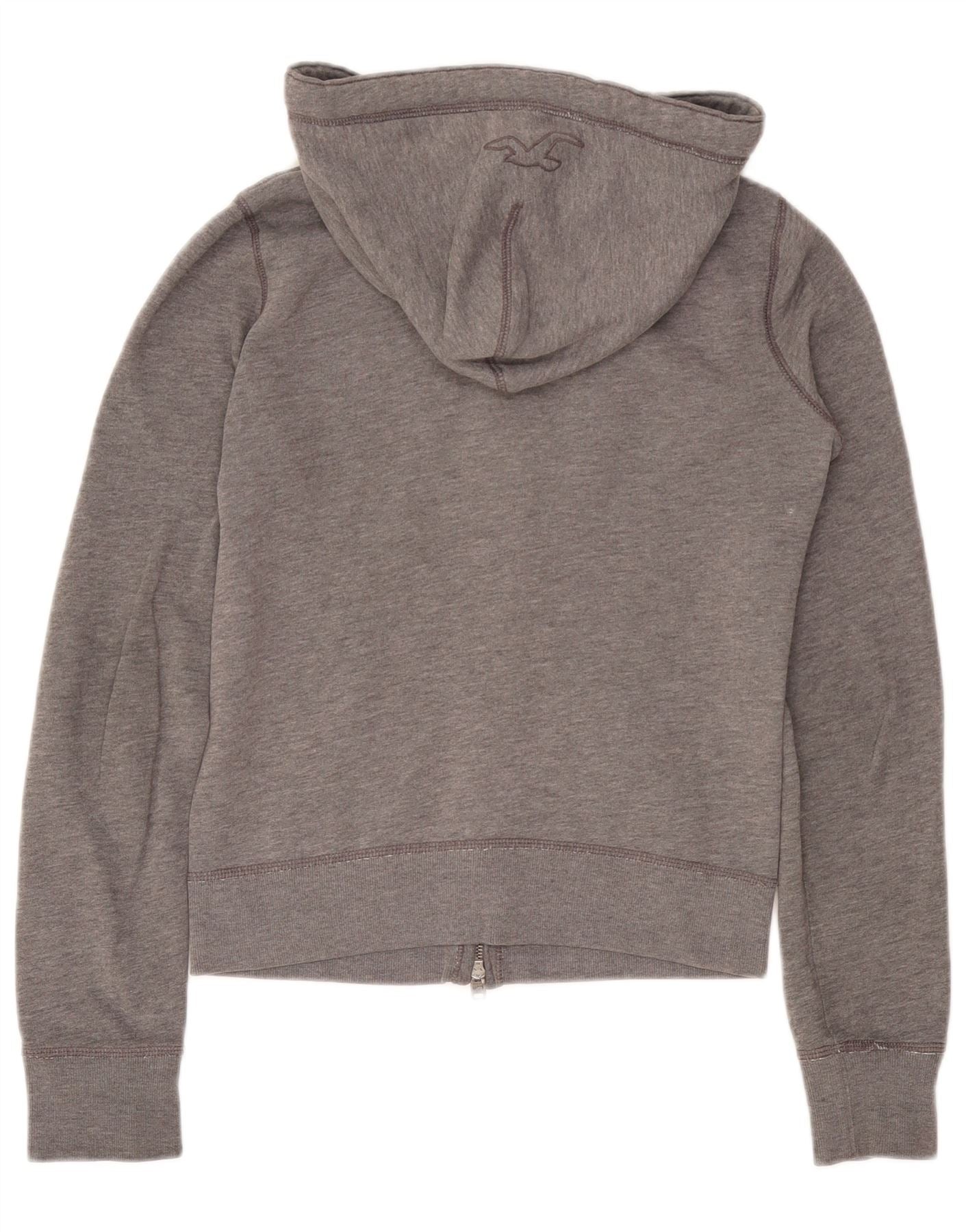 HOLLISTER Womens Graphic Zip Hoodie Sweater UK 10 Small Grey Cotton