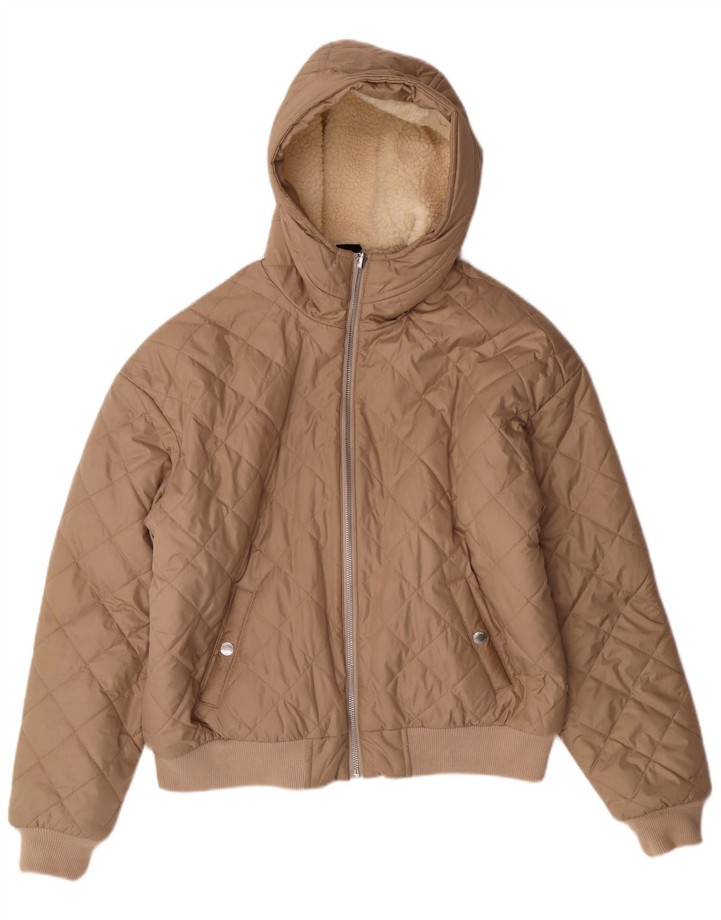 NIKE Womens Crop Oversized Zip Hoodie Sweater UK 10 Small Beige Polyester