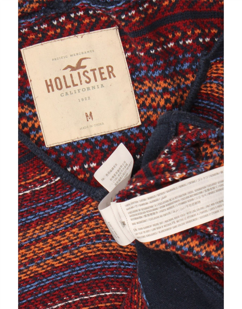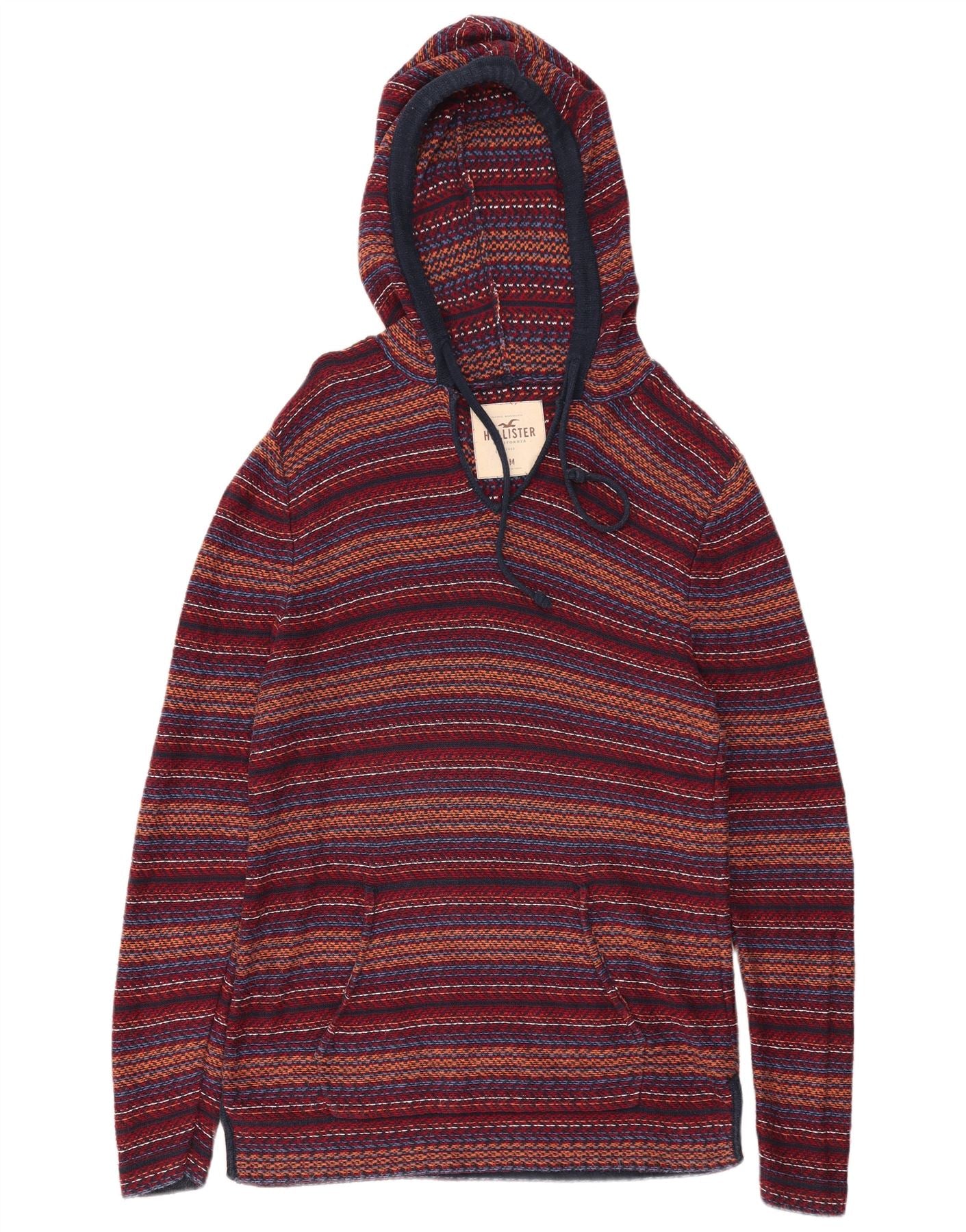 HOLLISTER Womens Hoodie Jumper UK 14 Medium Multicoloured Striped Cotton